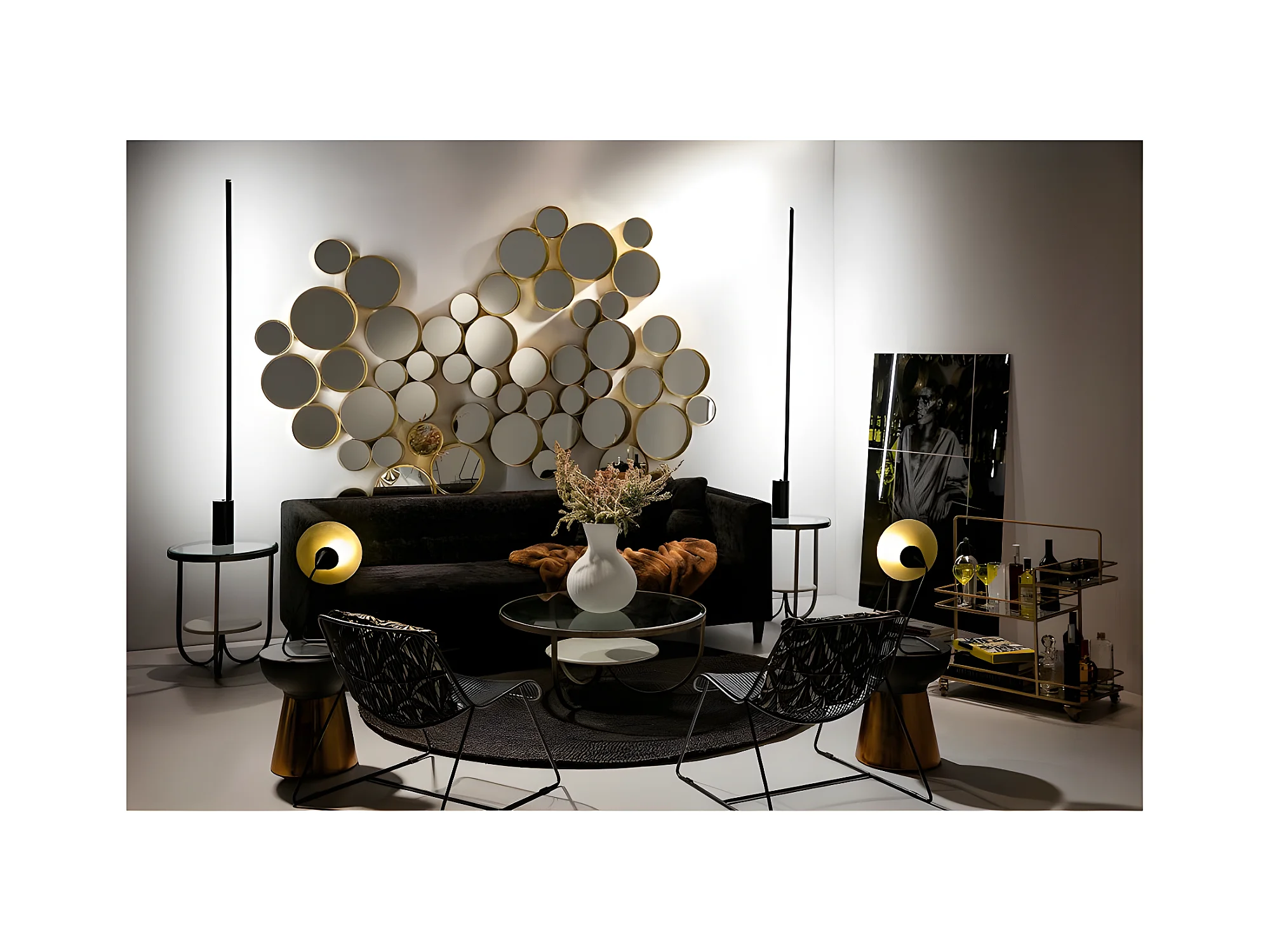 Kaïra 7 ronde goudkleurige metalen wandspiegel