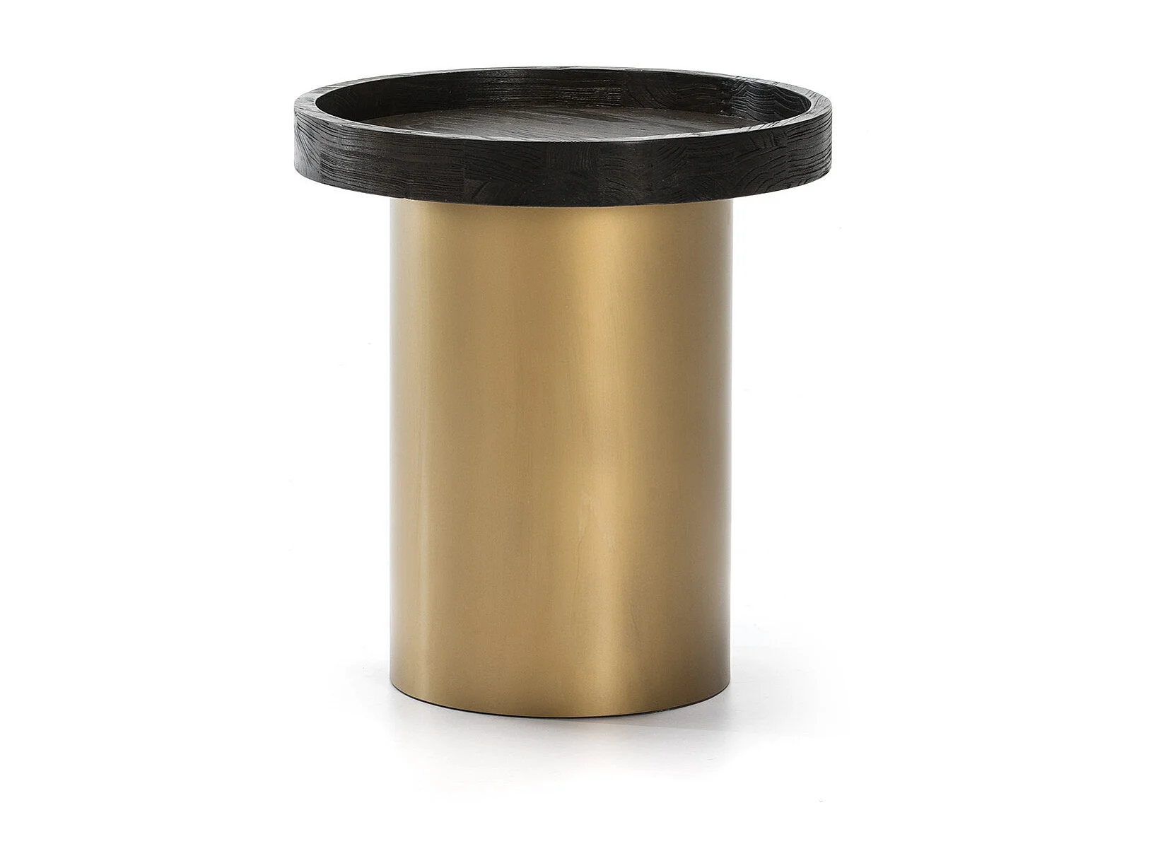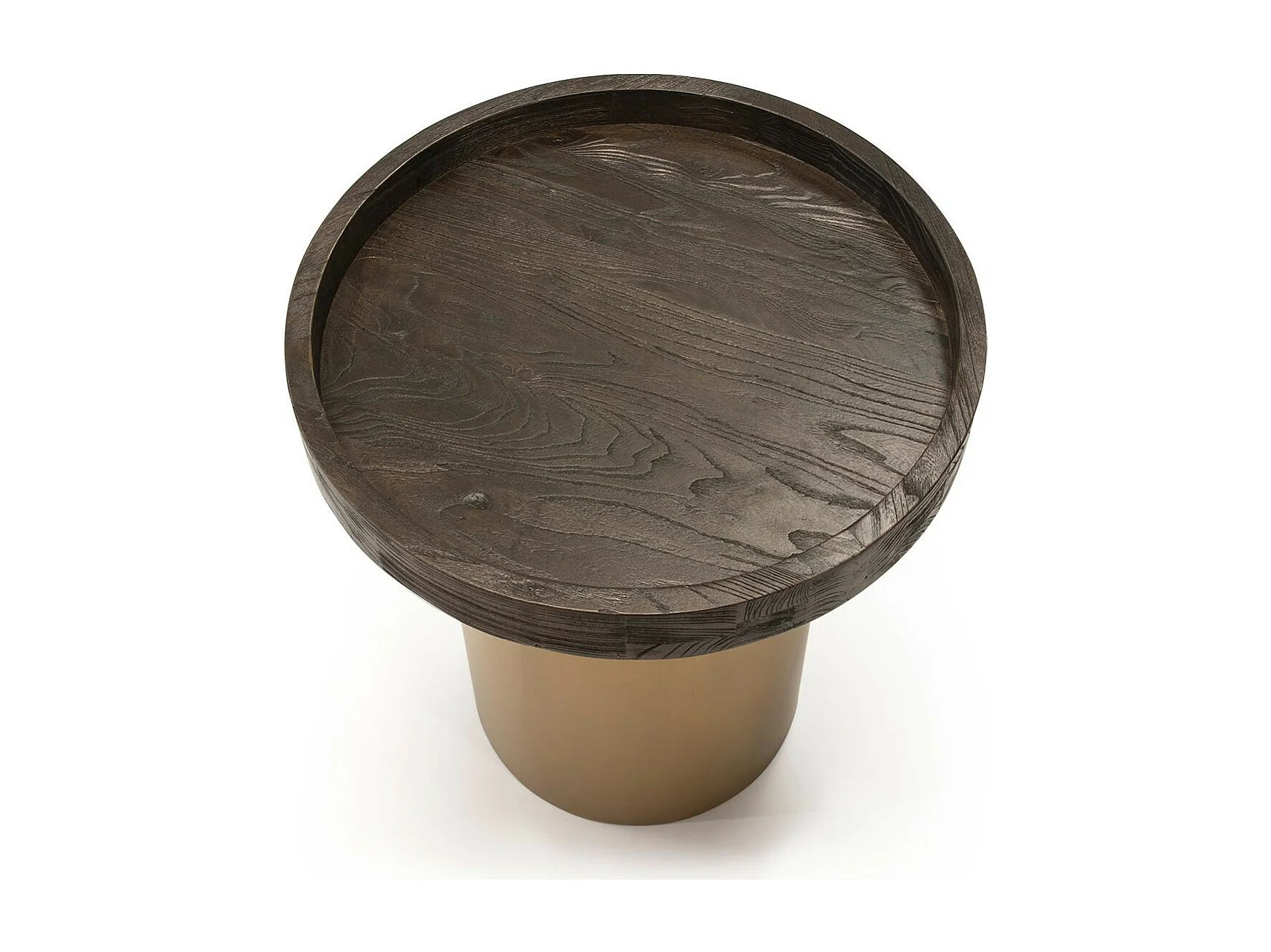Kairi ronde bijzettafel van donker hout en goudkleurig metaal D 50 cm