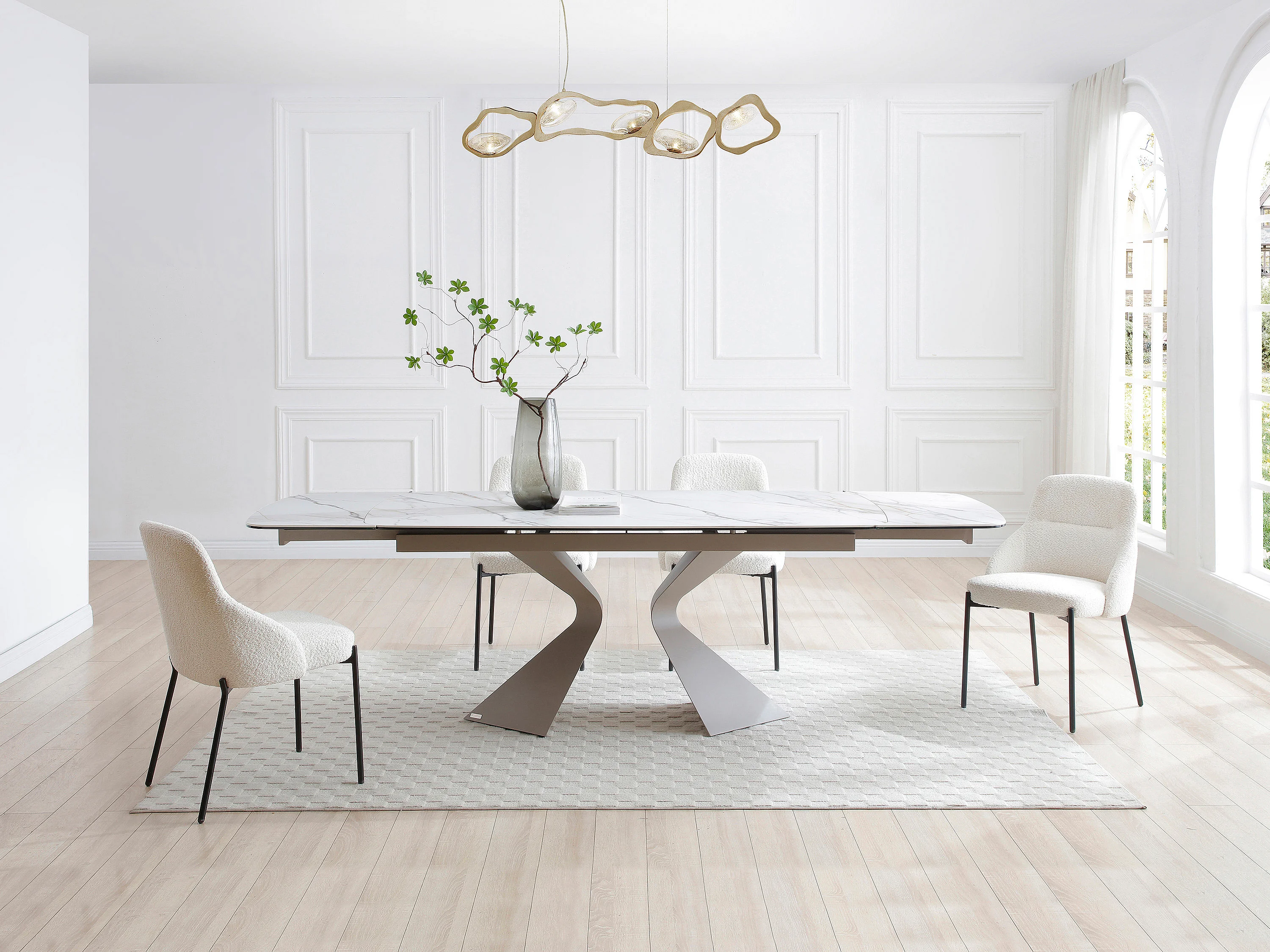 Verlengbare eettafel 6 tot 10 plaatsen van gehard glas, keramiek en taupegrijs metaal - Wit marmereffect - KAJARI van Maison Céphy