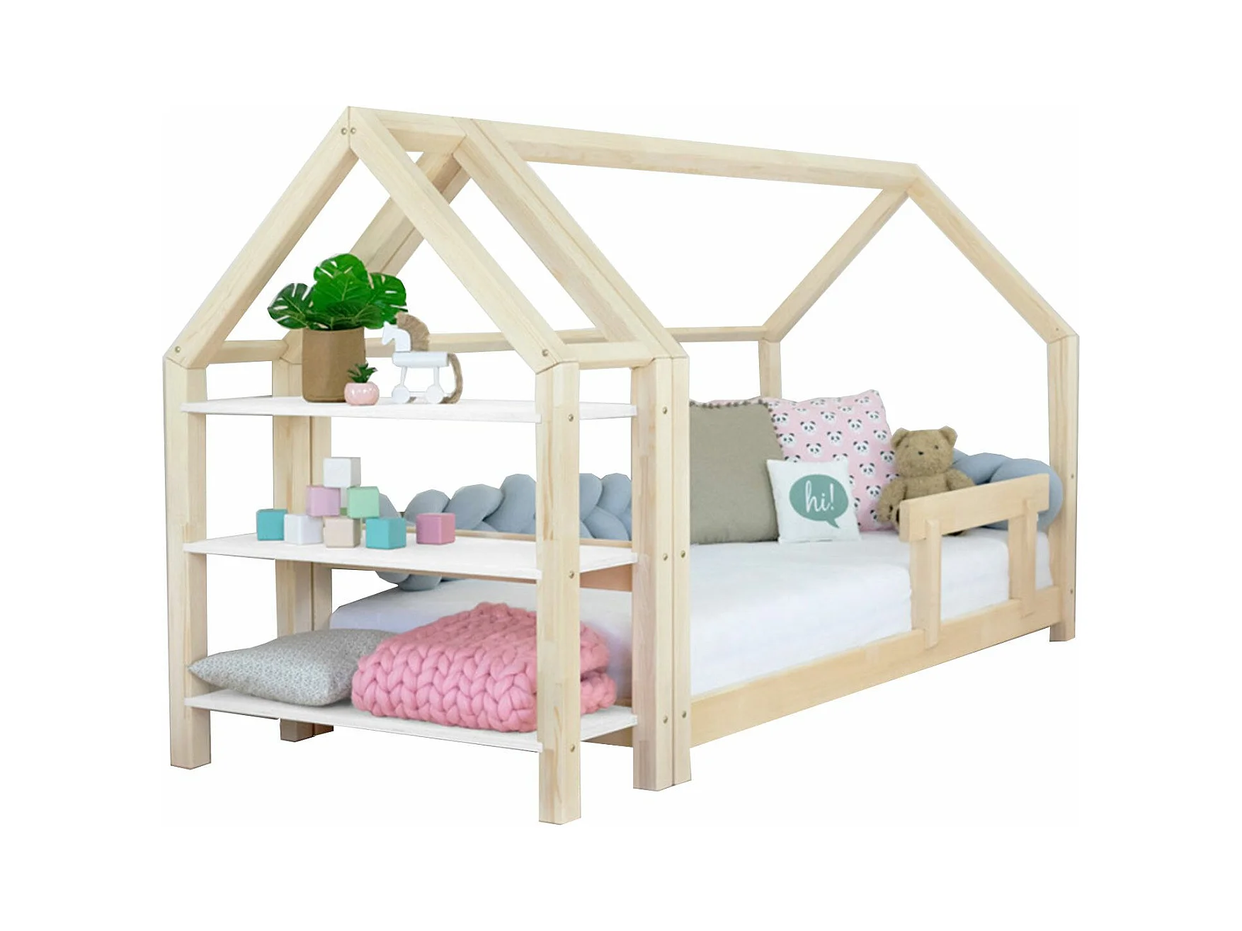 Kajuitbed met plank 80 x 160 naturel en grijs
