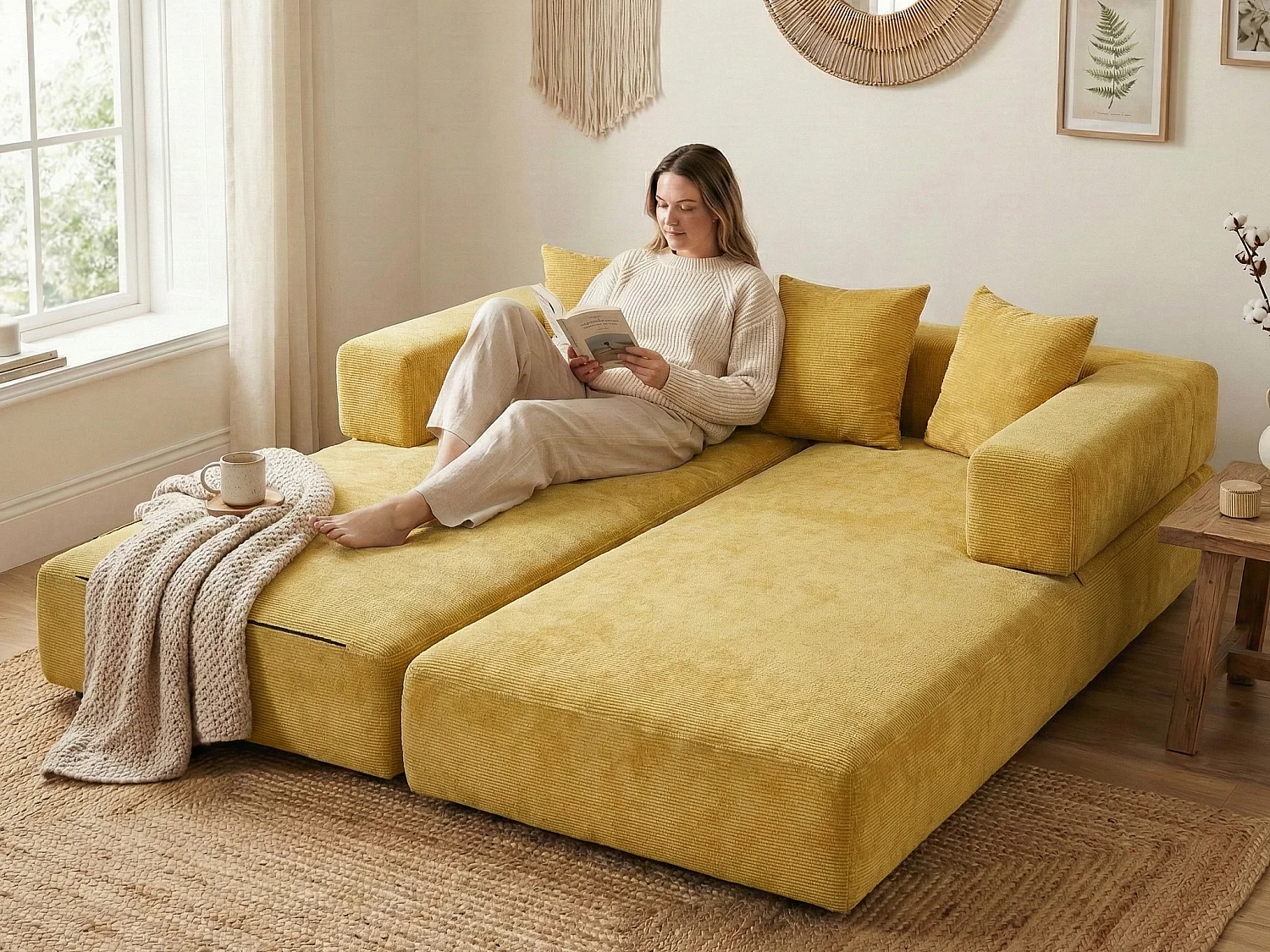 Kaleido 1.0 - Modulaire chenillebank - Bank die in verschillende vormen kan worden omgebouwd - Inclusief 3 kussens - Perfect voor woonkamer, slaapkamer