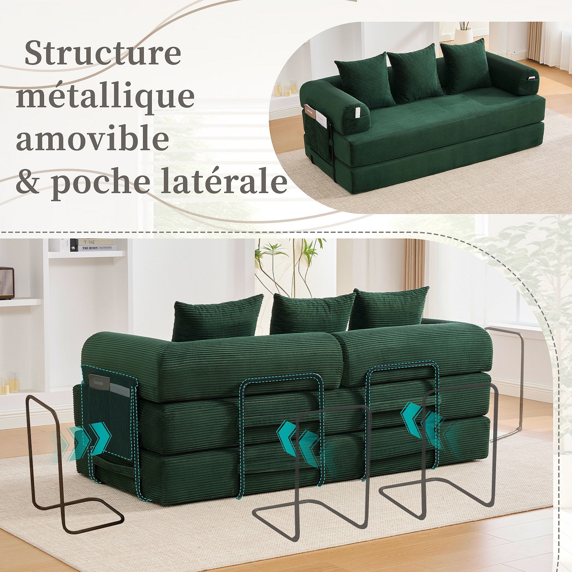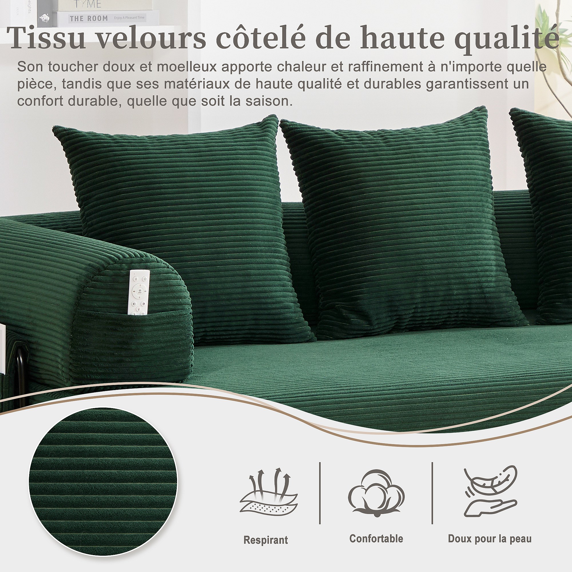 Kaleido 2.0 - Modulaire Corduroy Bank - Extern Metalen Frame - Opbergvakken en 3 Kussens Inbegrepen - Ideaal voor Woonkamer, Appartement