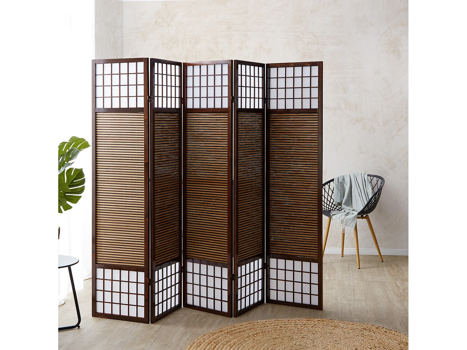Kamerscherm met 5 panelen massief paulowniahout donkerbruin BE441195
