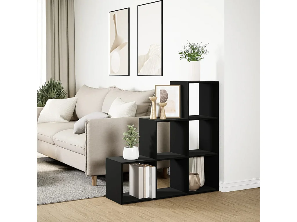 Kamerscherm / boekenkast 3-laags 99x29x99 cm bewerkt hout zwart