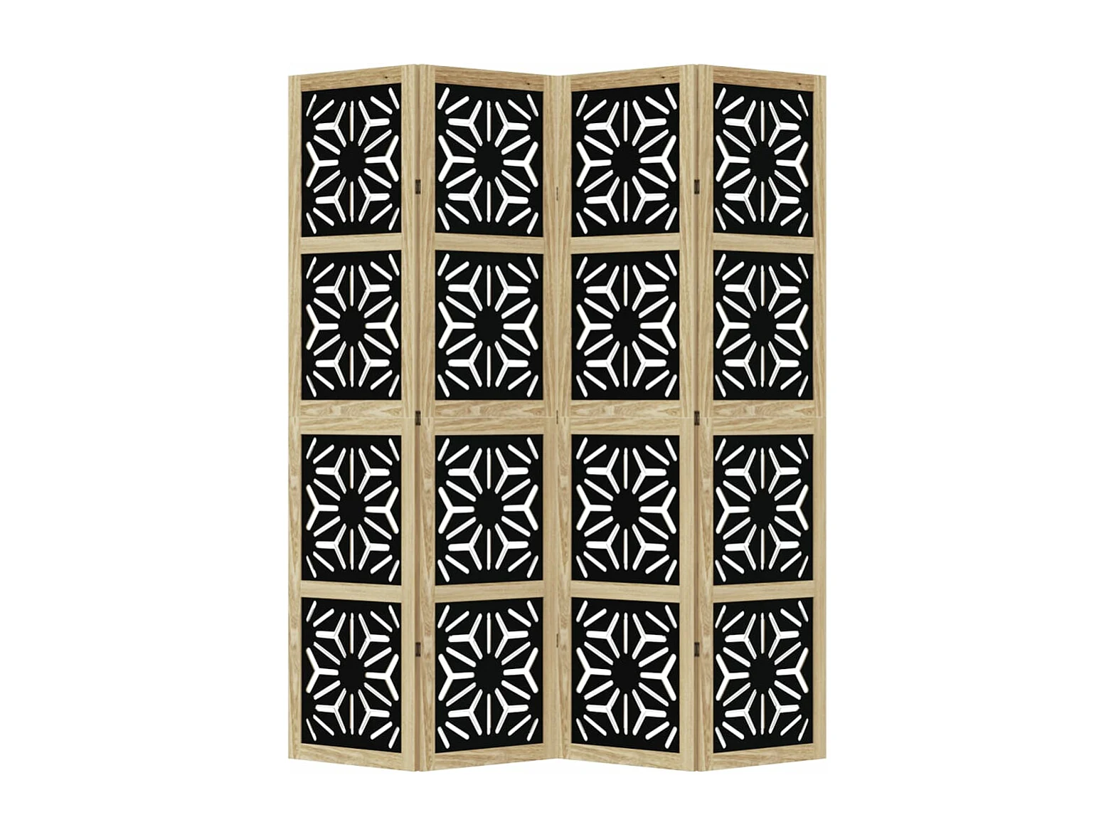 Kamerscherm met 4 panelen massief paulowniahout bruin en zwart BE341270