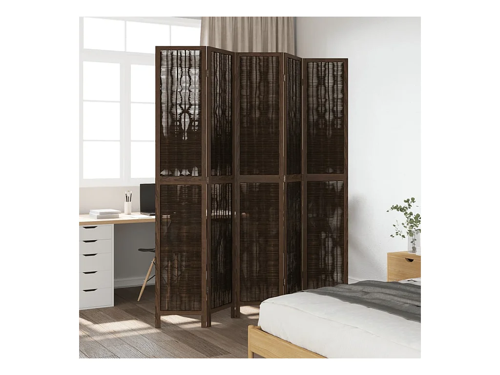 Kamerscherm met 5 panelen massief paulowniahout donkerbruin BE902790