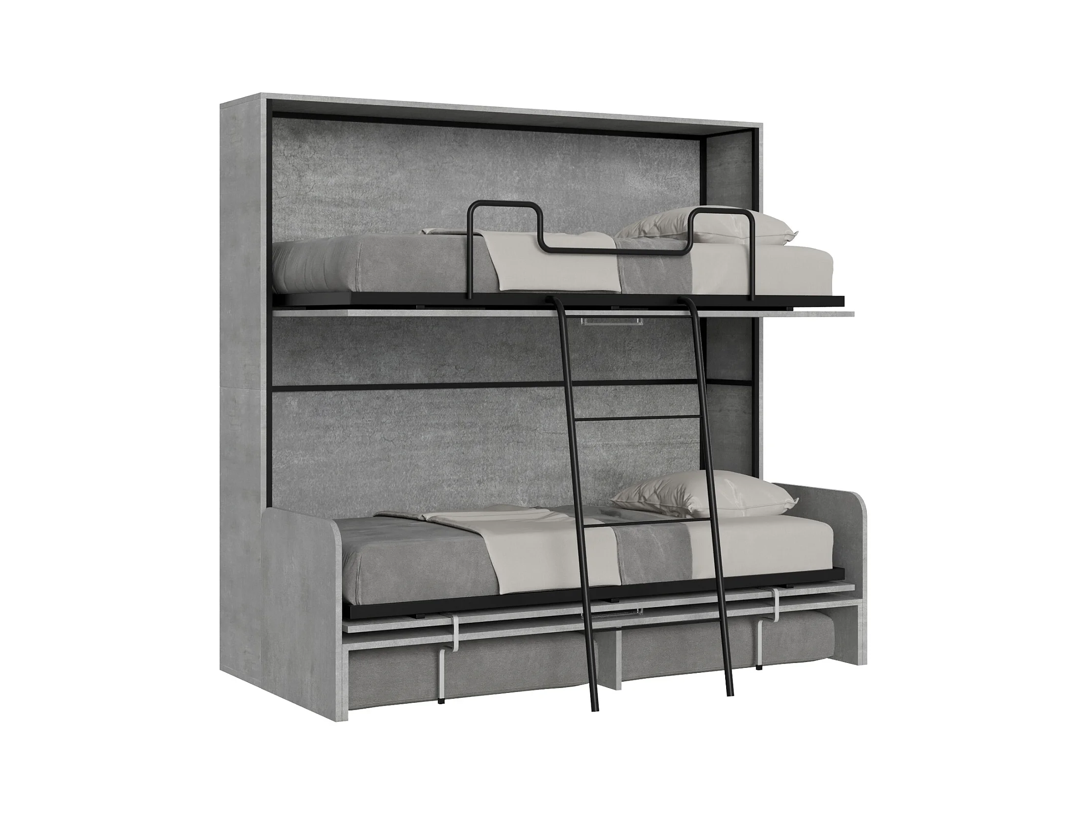 Betongrijs stapelbed opklapbed 2 bedden 80x190 cm Spaky-Versie 1 zijbarrière