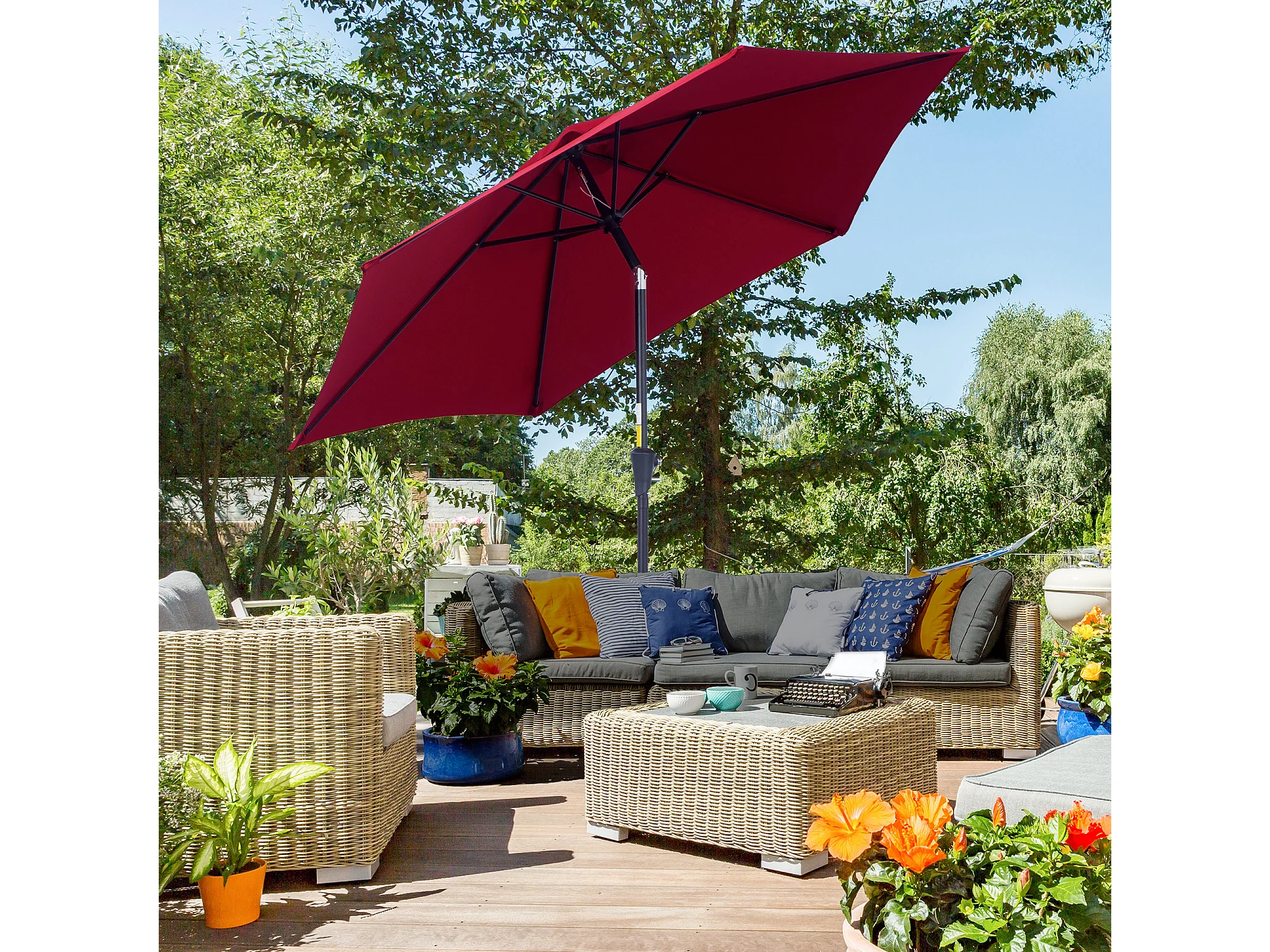 Kantelbare parasol met slinger, aluminium, 180 g/m² polyester, rood (Ø2,6xH2,35 m)