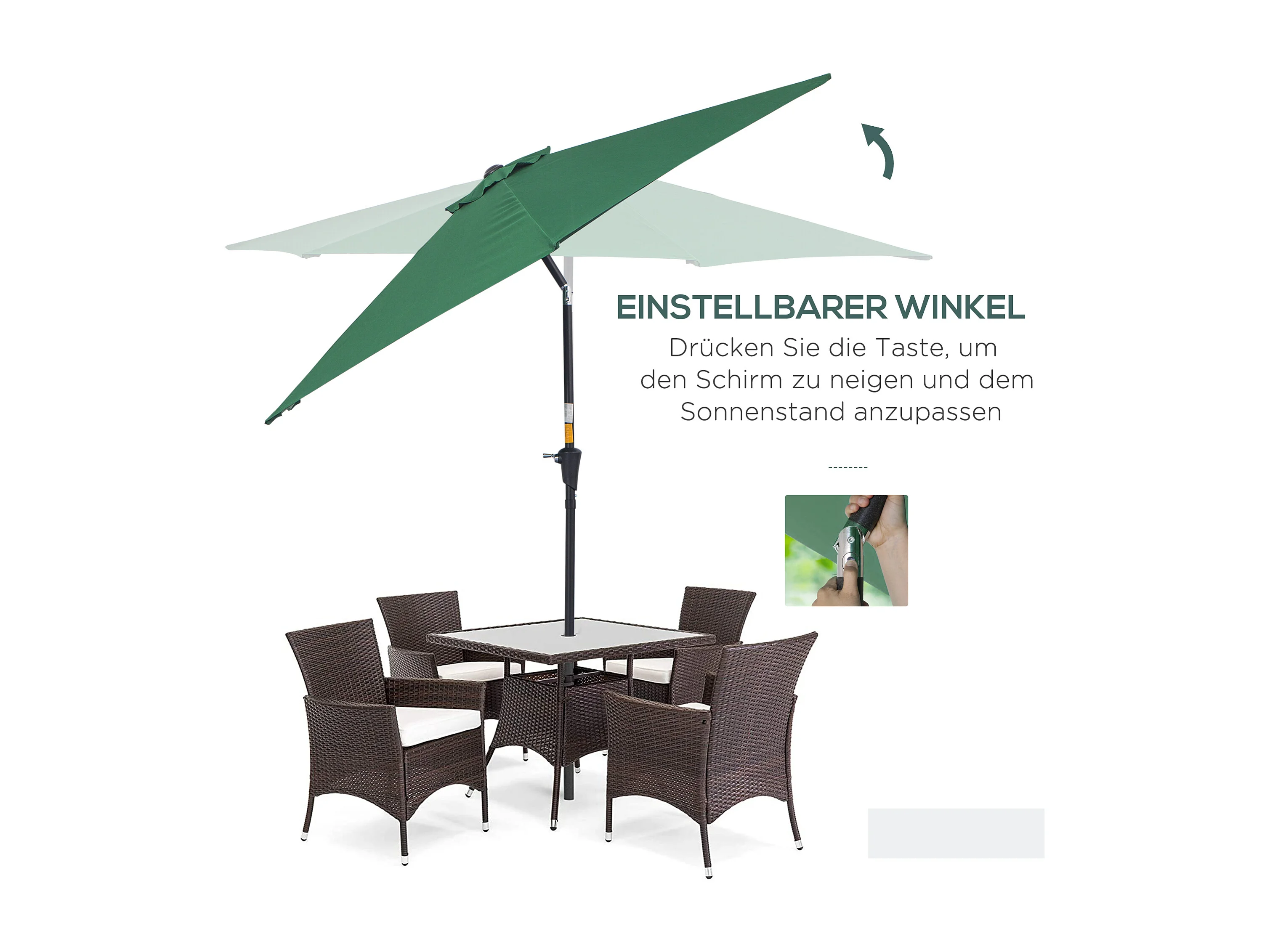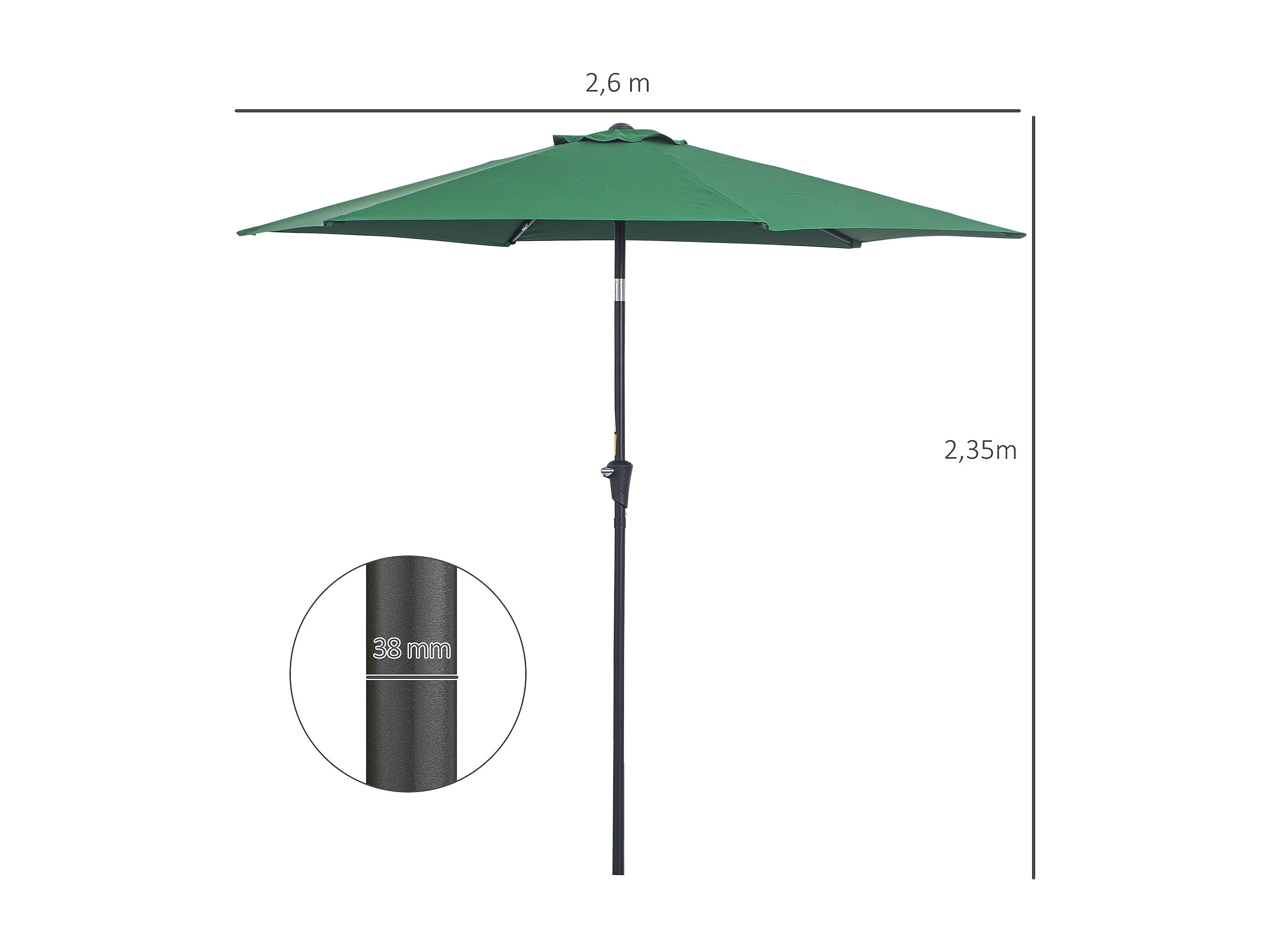 Kantelbare parasol met slinger, aluminium, polyester, groen (Ø2,6x2,35 m)