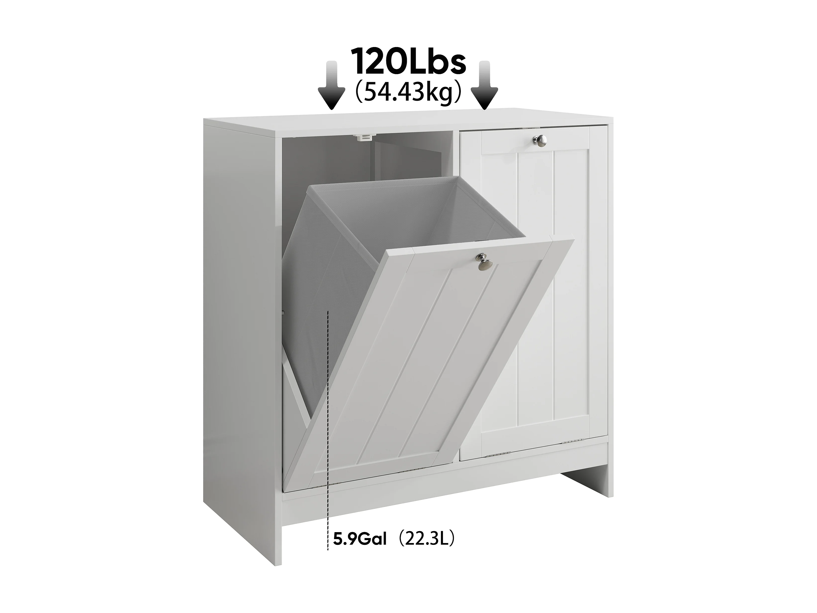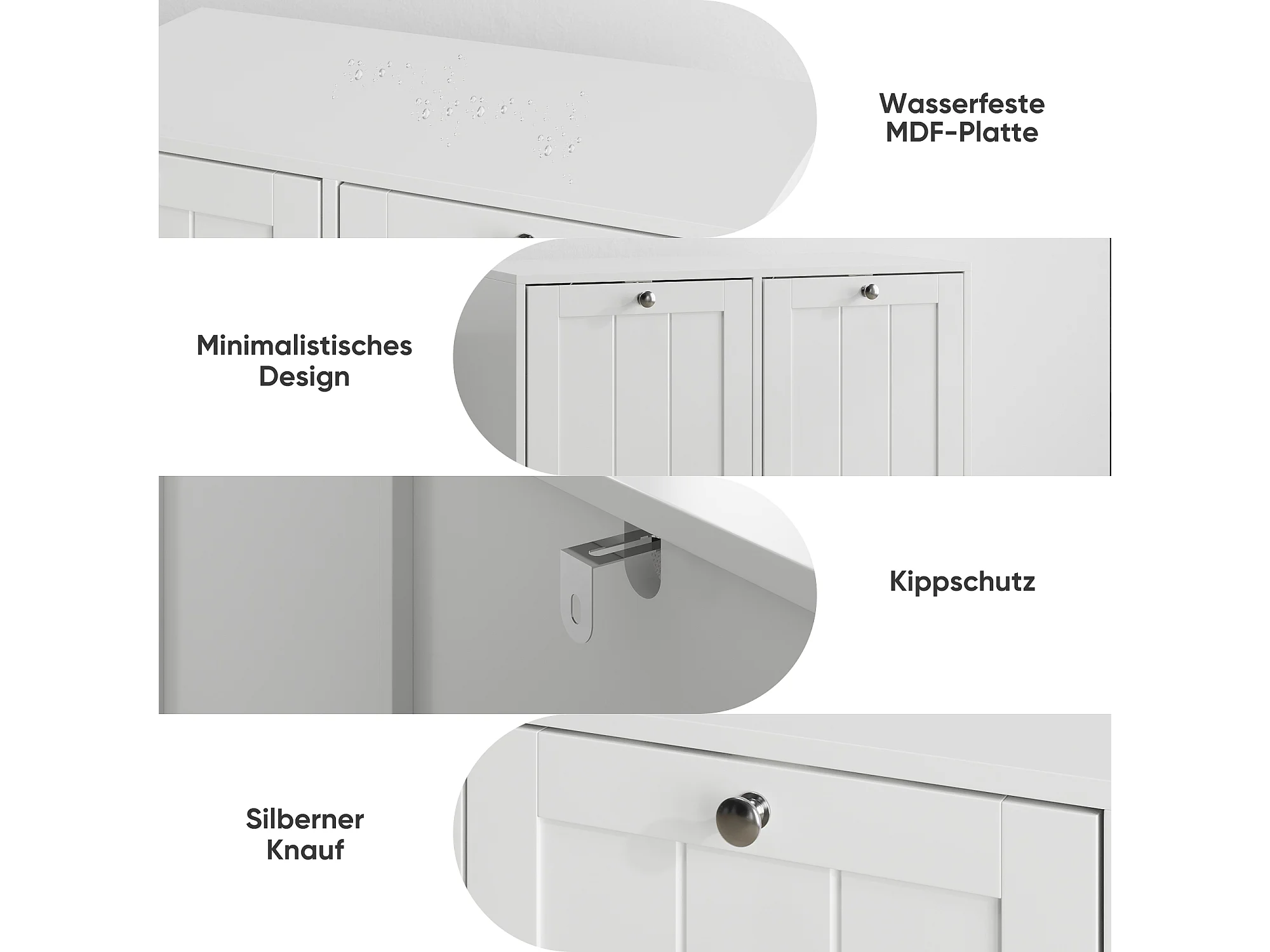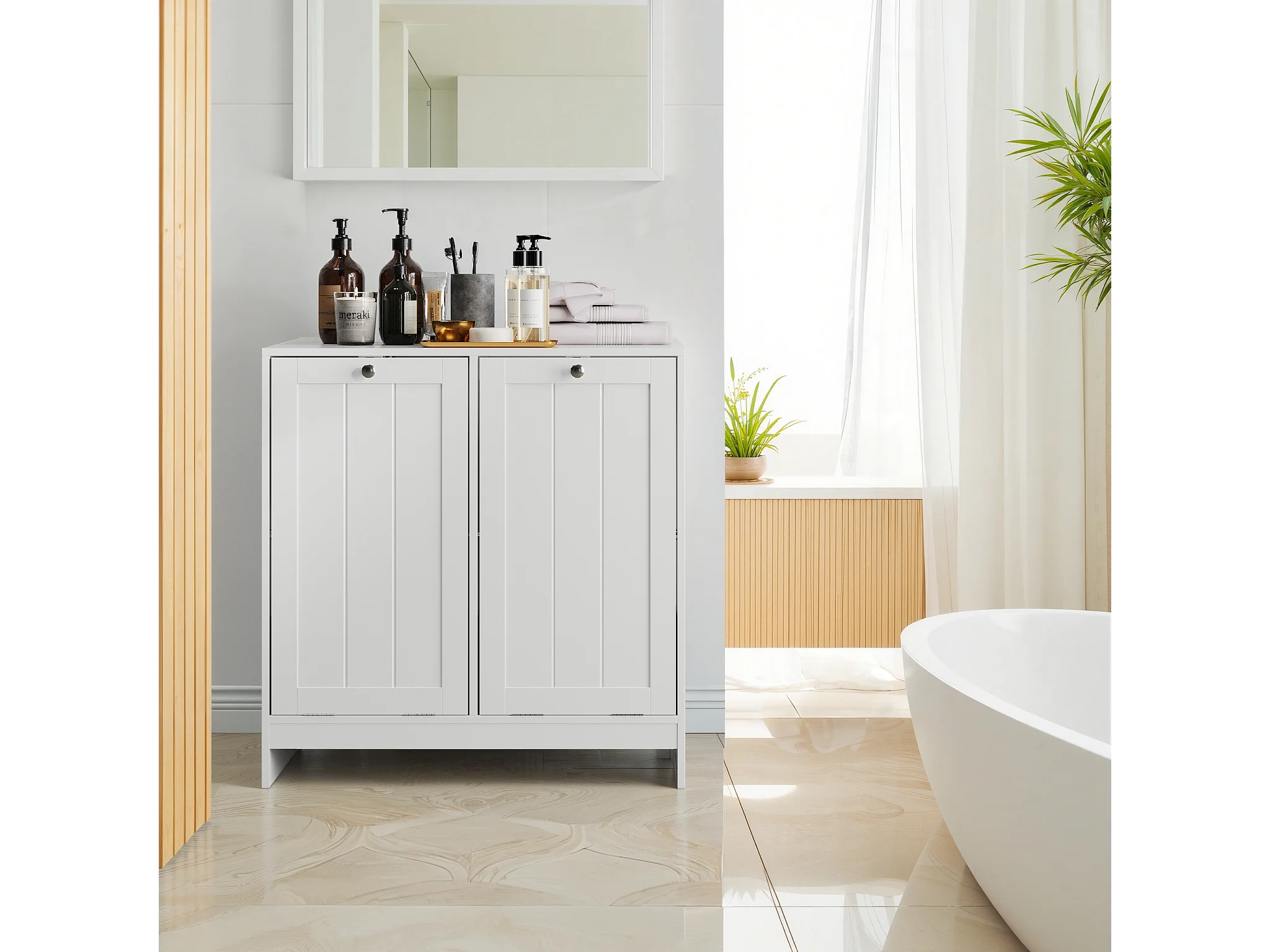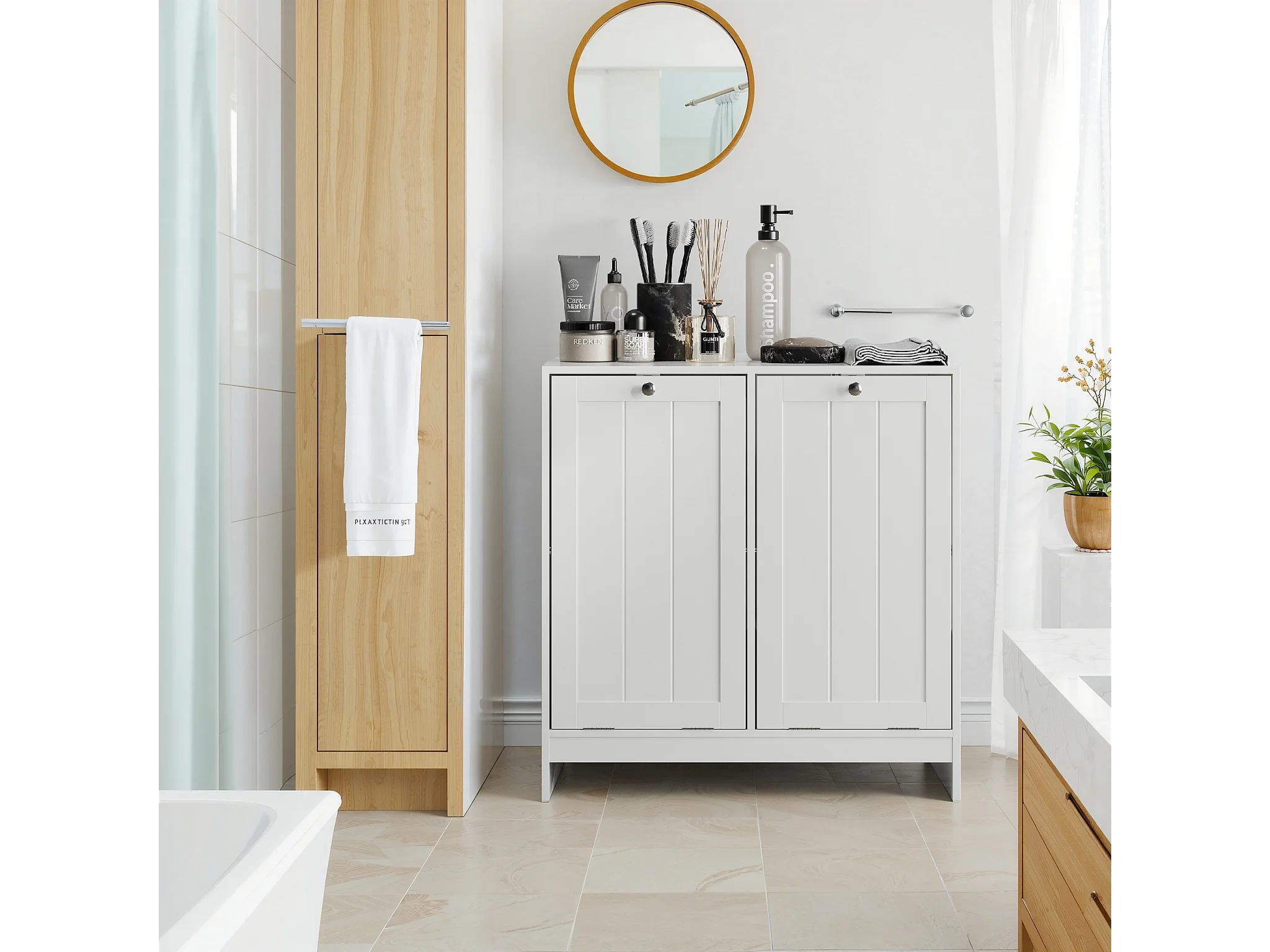 Badkamerkast met dubbele wasmand, geverfd MDF, verstelbare planken, 1 deur, wit (78x35x172,7 cm)