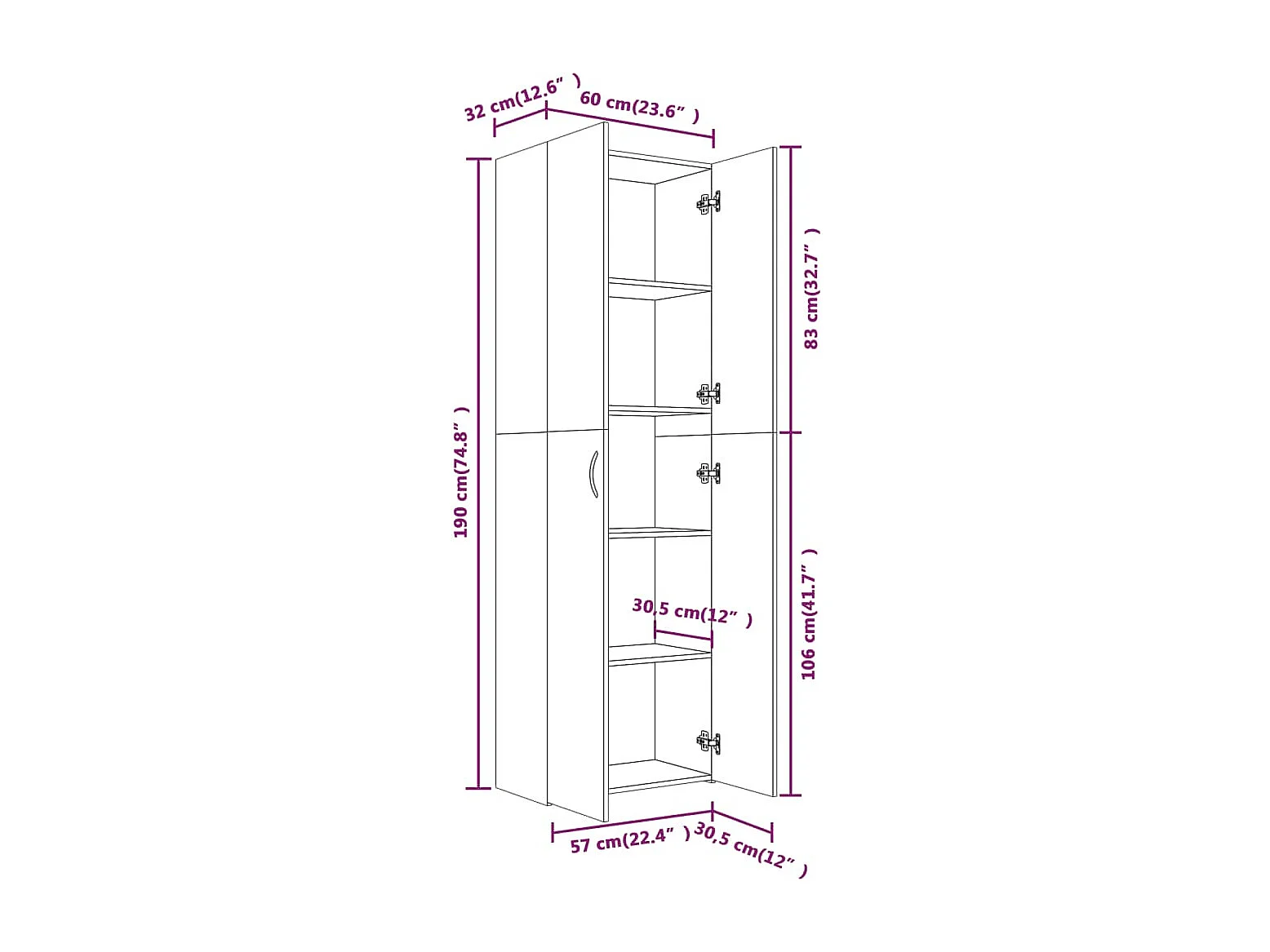 Kantoorkast Bruin eiken 60x32x190 cm Bewerkt hout
