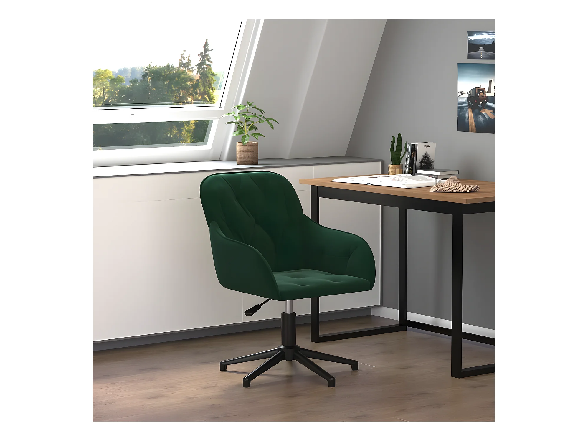 Kantoorstoel draaibaar fluweel donkergroen