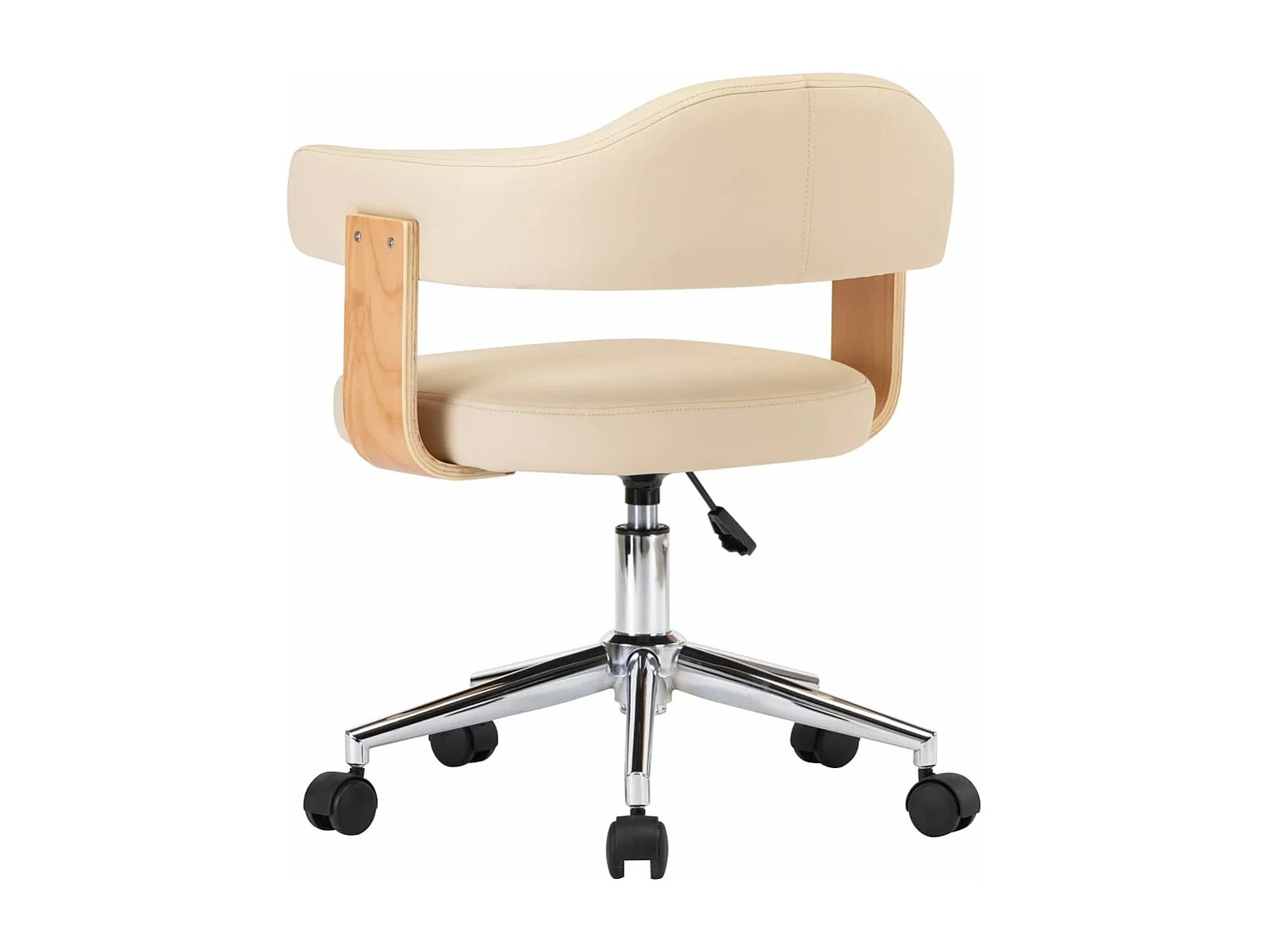 Kantoorstoel draaibaar gebogen hout en kunstleer crème