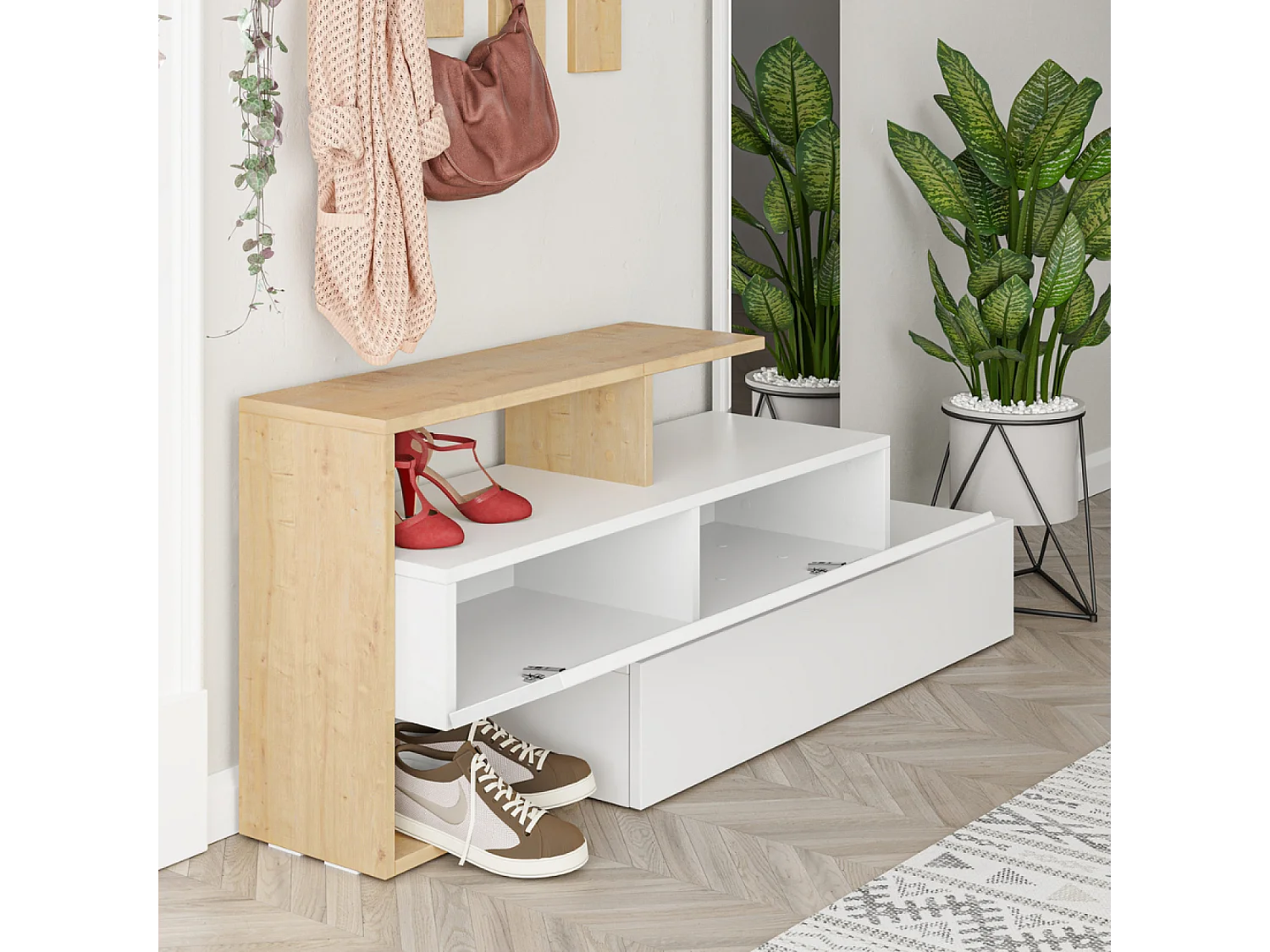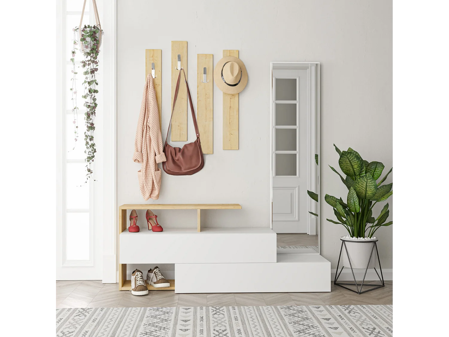 Kapstok en Spiegel van Hout/Wit voor de Hal - Moderne Entree Organizer