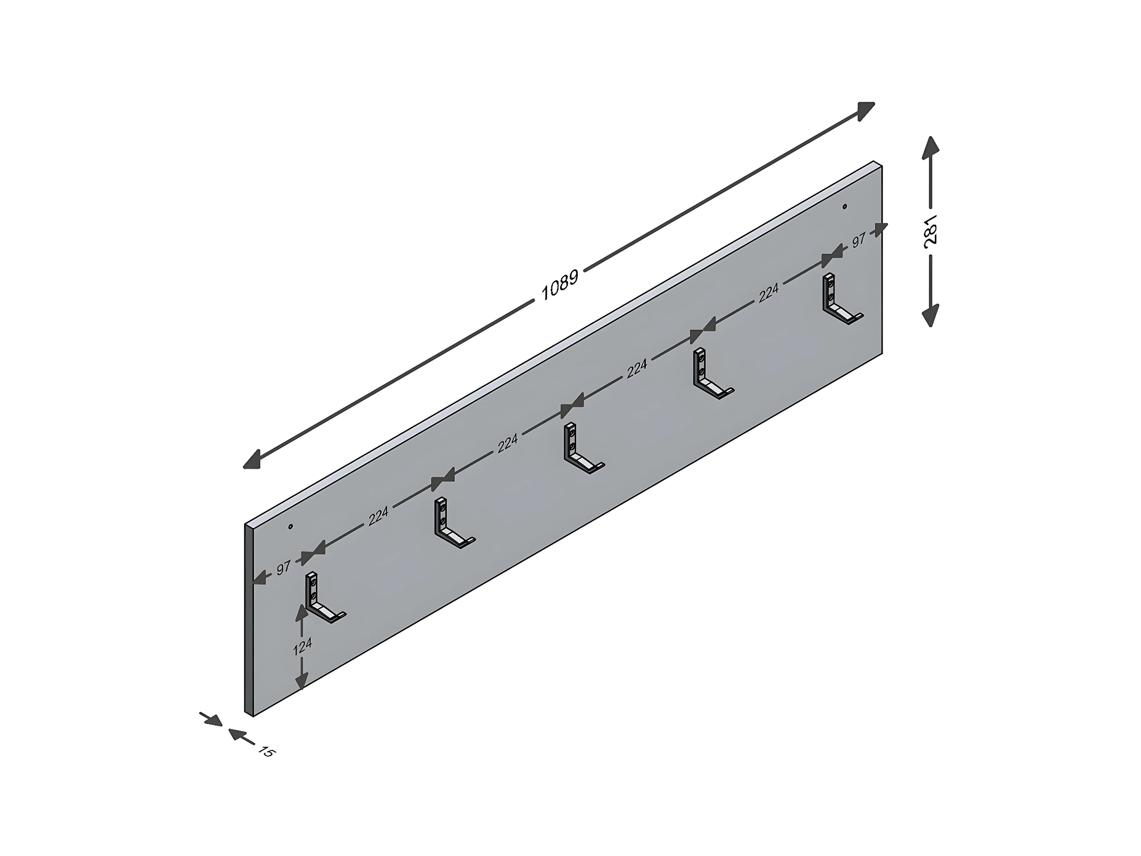 Kapstok met 5 haken Belm 8 - L109 cm