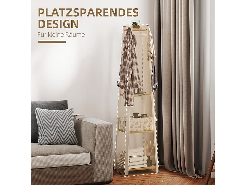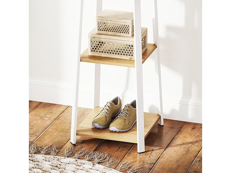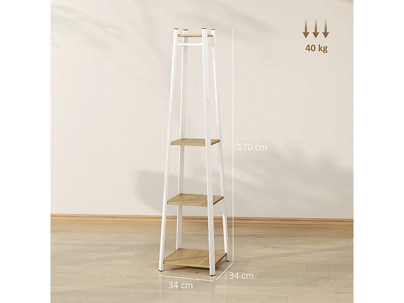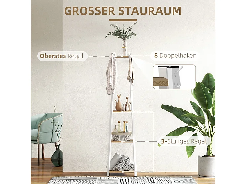 Design kapstok met 3 planken en 8 haken, solide kapstok, halkapstok, 39x39x169cm