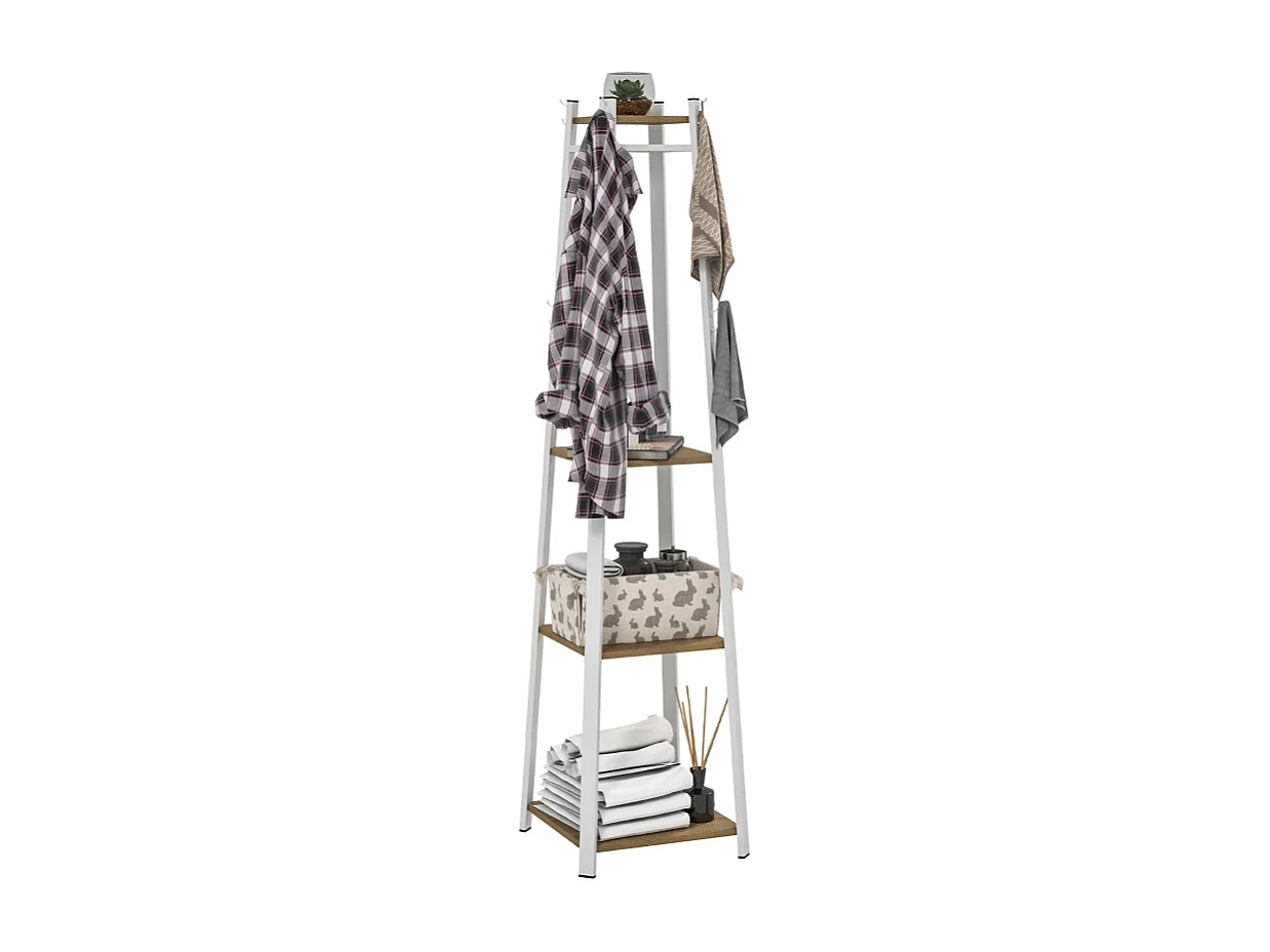 Kapstok met 8 haken, 4 niveaus, gelakt staal, wit, stabiel en veelzijdig (34x34x170cm)