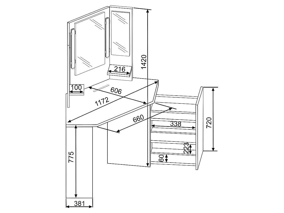 Hij heeft een grote opberglade waarin u al uw schoonheidsproducten kwijt kunt.