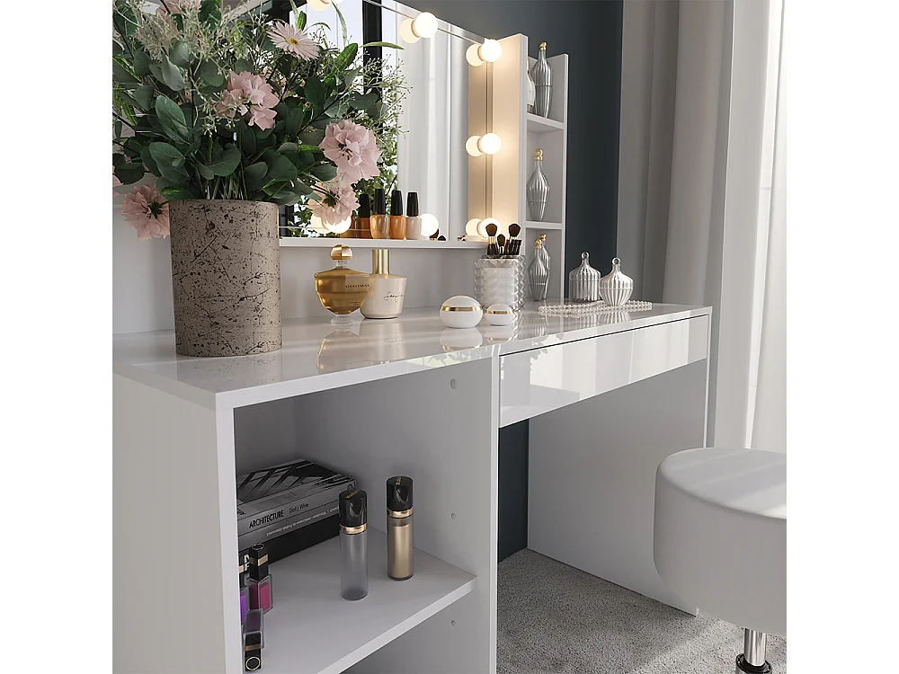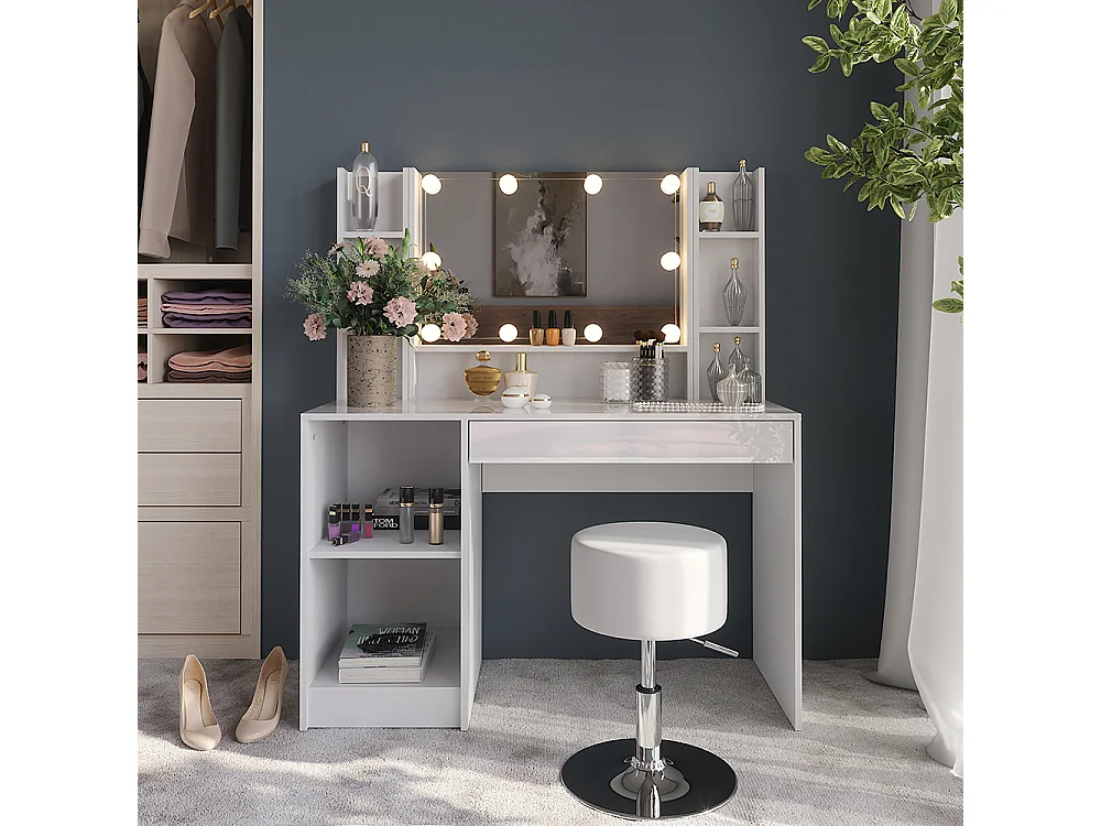 Kaptafel set met kruk wit/wit hoogglans 119.8x50.1x76 sherry