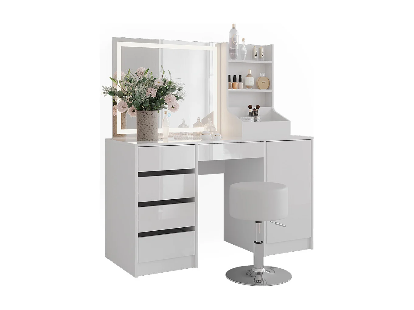 Kaptafel set met kruk wit/wit hoogglans 128.2x50.1x76 sherry
