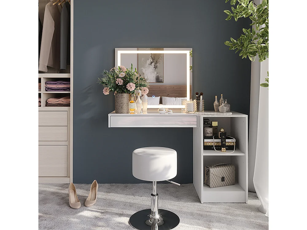 Kaptafel set met kruk wit/wit hoogglans 120x50.1x76 sherry