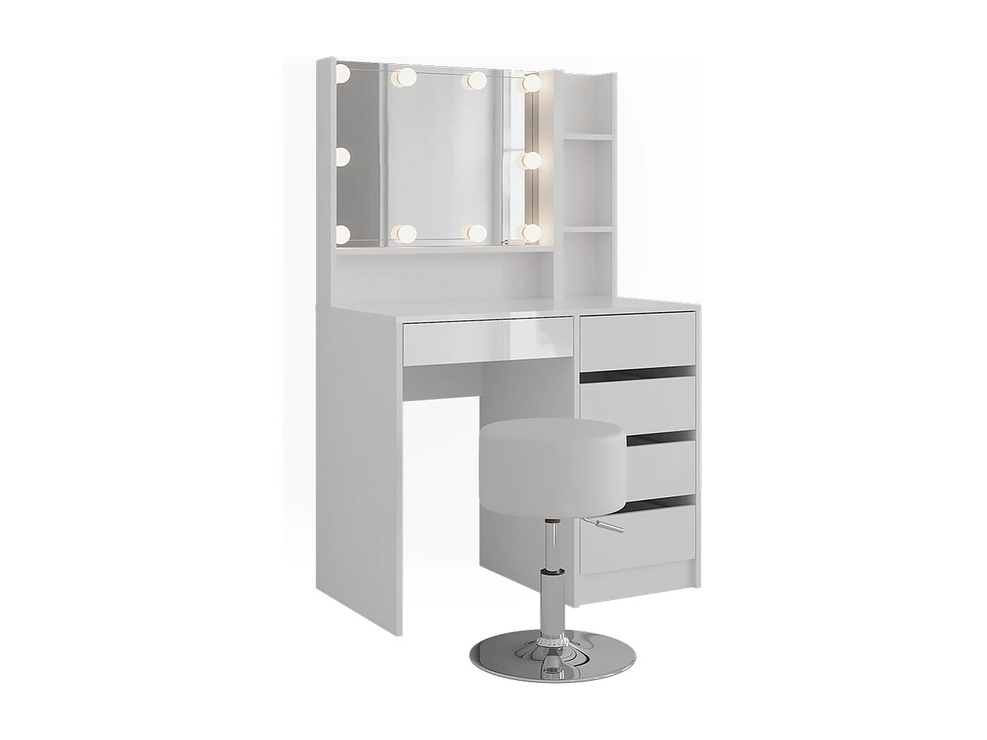 Kaptafel set met kruk wit/wit hoogglans 89.8x50.1x76 sherry