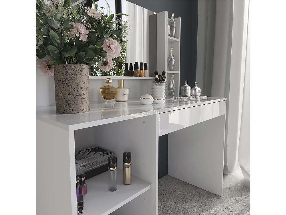 Kaptafel set met kruk wit/wit hoogglans 119.8x50.1x76 sherry