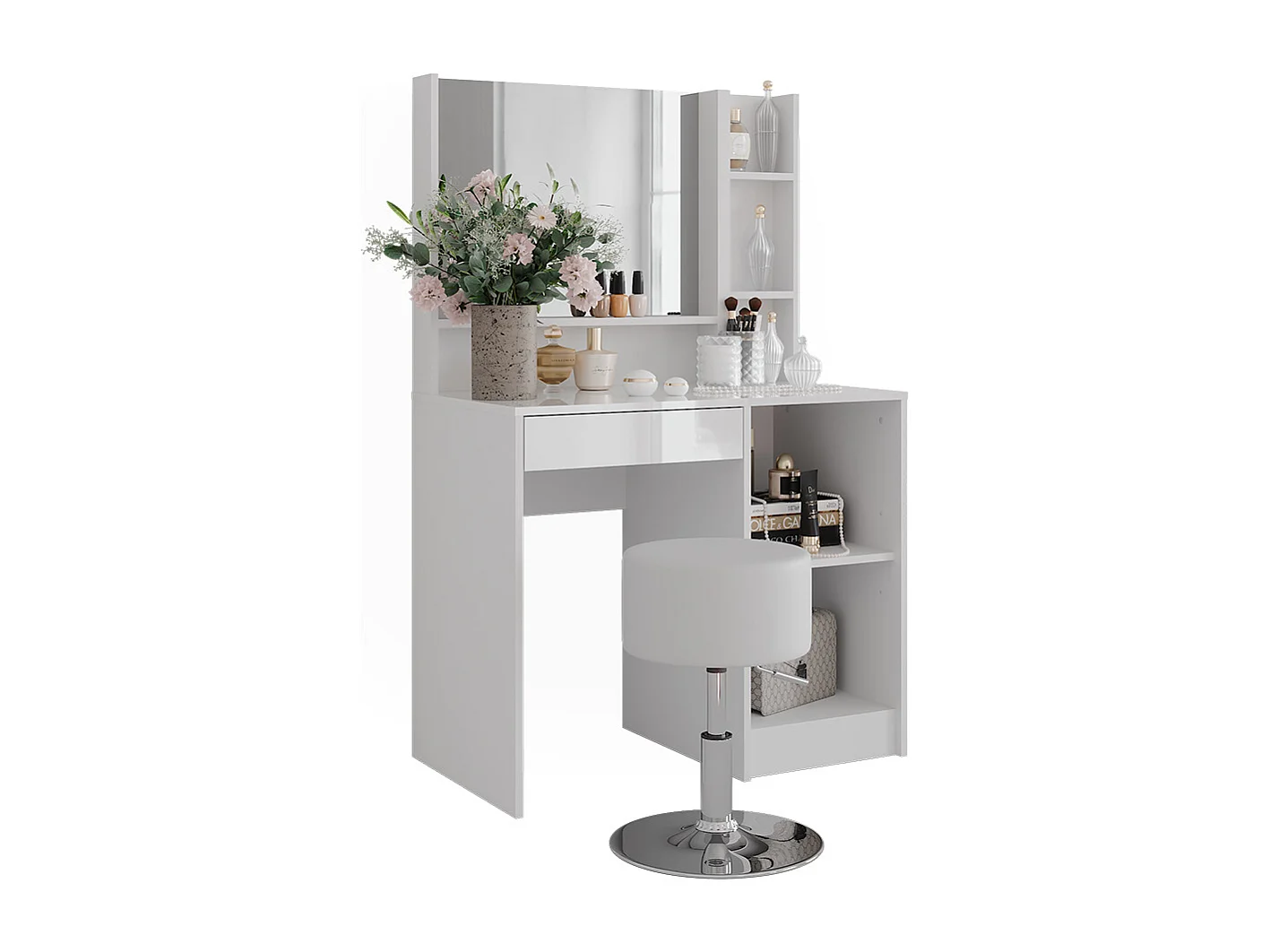 Kaptafel set met kruk wit/wit hoogglans 89.8x50.1x76 sherry