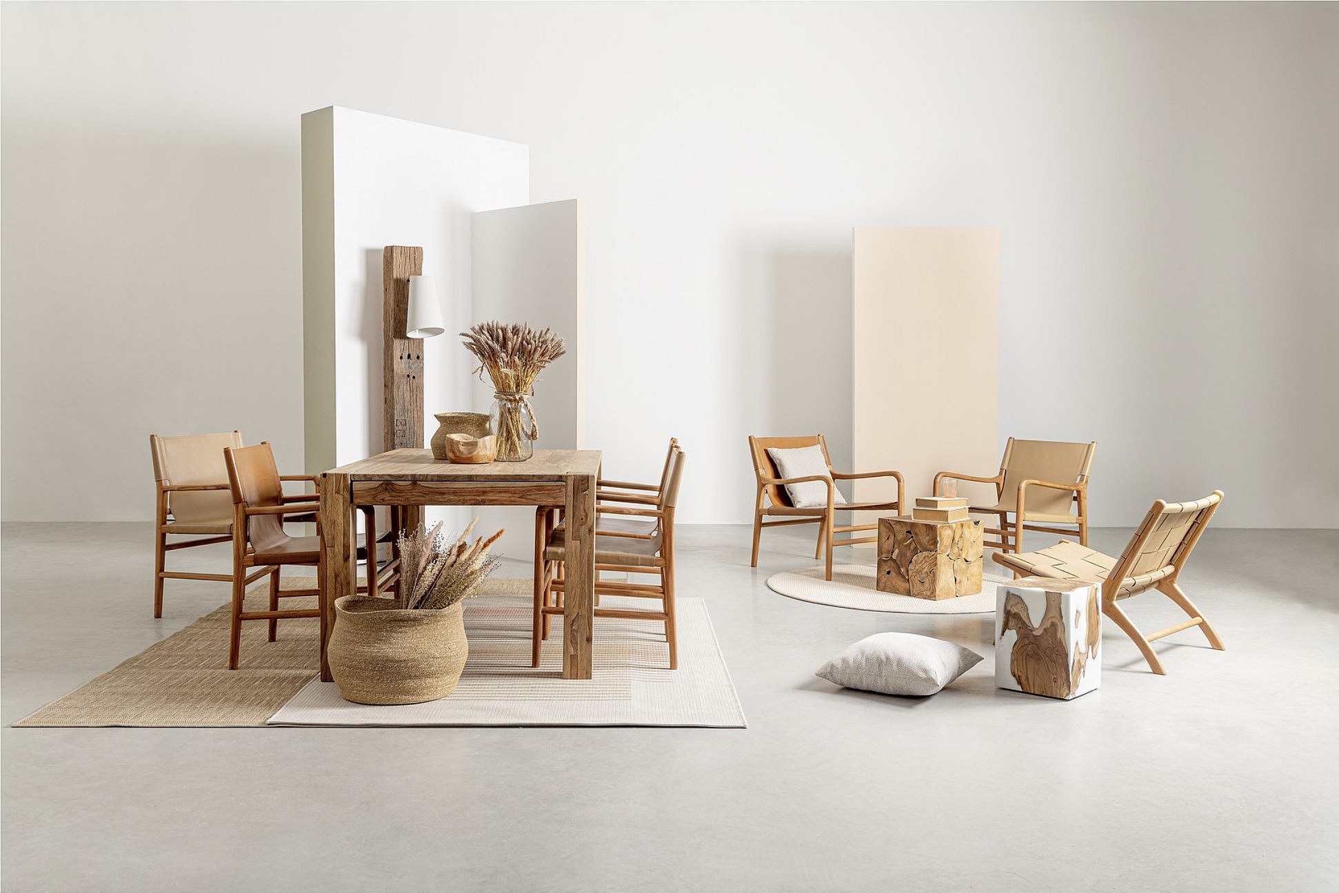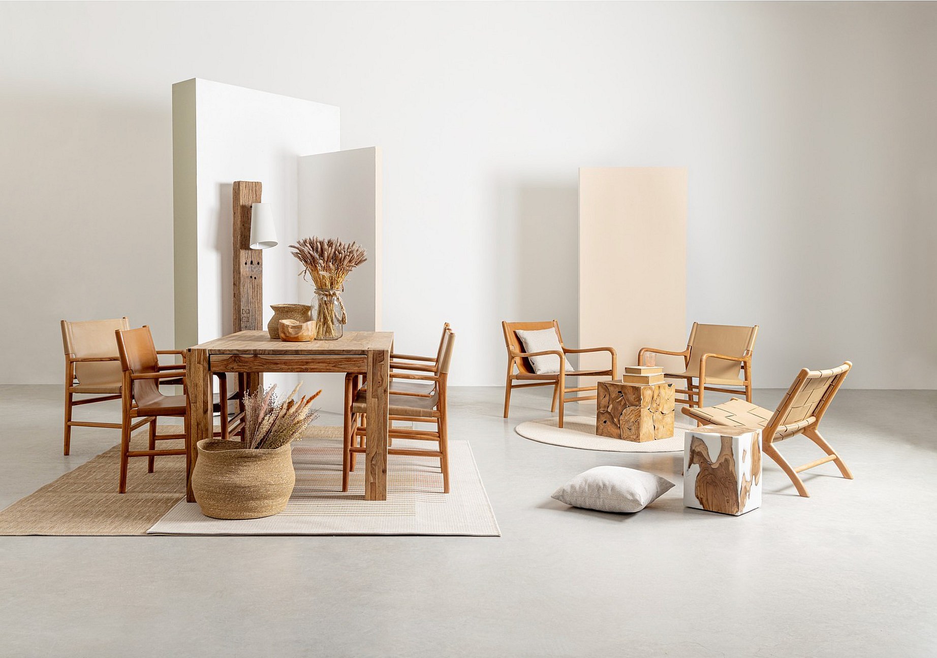 Karole teakhouten en leren loungestoel – Modern en duurzaam-Kleur Lichtbruin