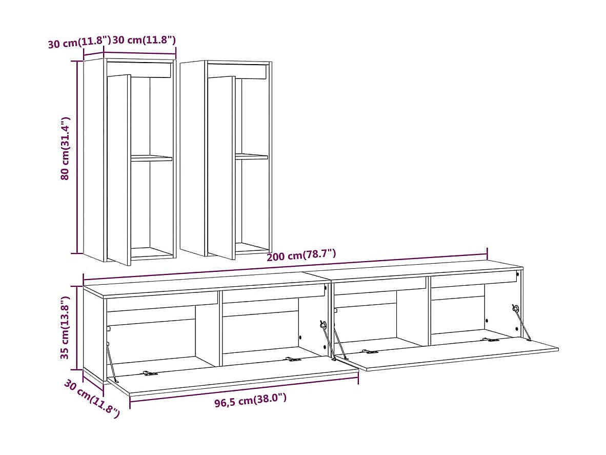 Karoline Sofie Tv-meubelen 4 st massief grenenhout