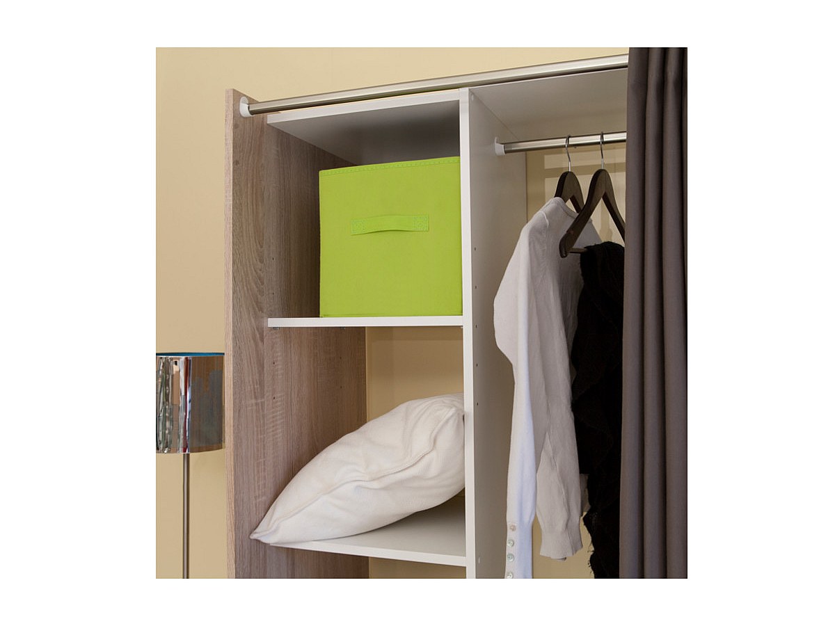 Deze kledingkast is verstelbaar van 112 tot 158 cm dankzij de snijbare stangen.