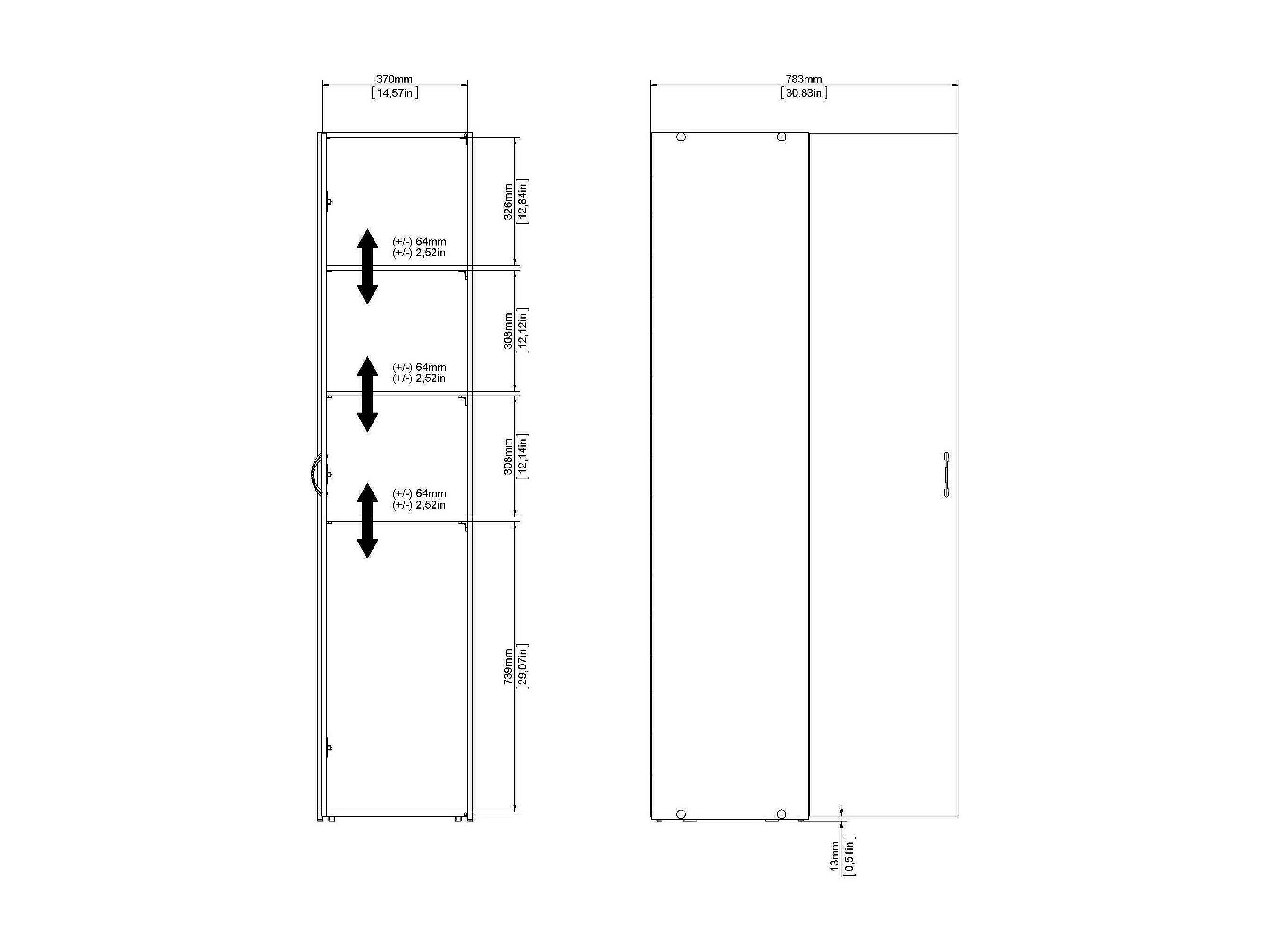 Kast met één deur en drie interne planken, kleur wit, afmetingen 39 x 175 x 41 cm