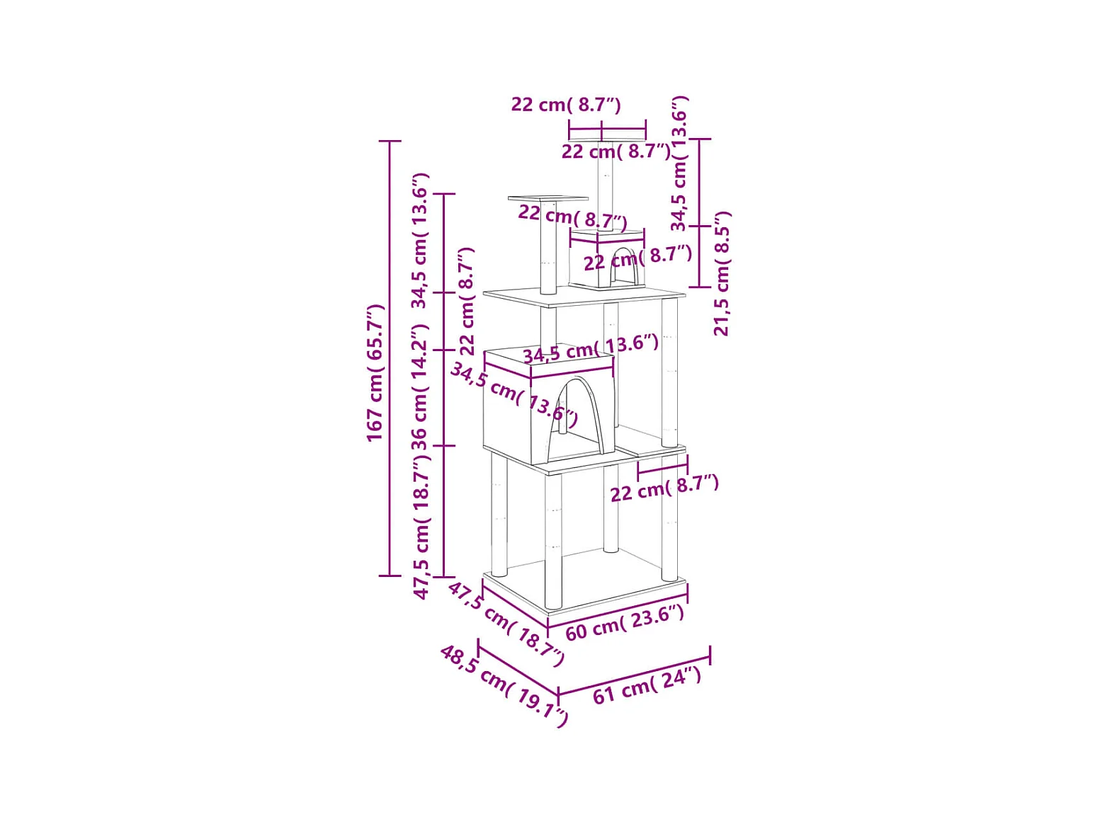 Kattenmeubel met sisal krabpalen 167 cm donkergrijs