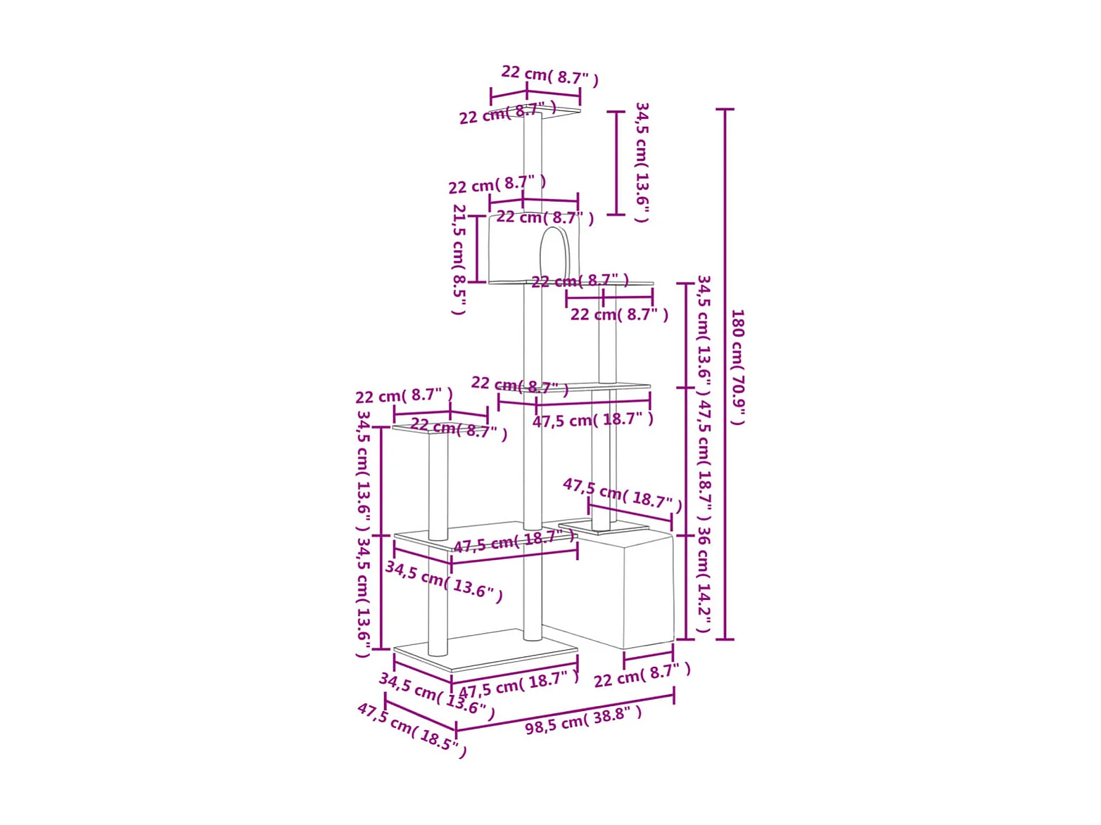 Kattenmeubel met sisal krabpalen 180 cm donkergrijs