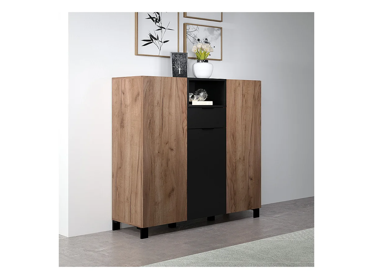 Kendo dressoir 3 deuren, 1 lade, 1 plank, eik decor, zwart mat.