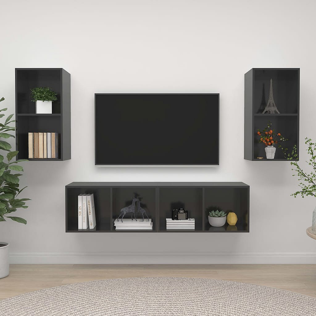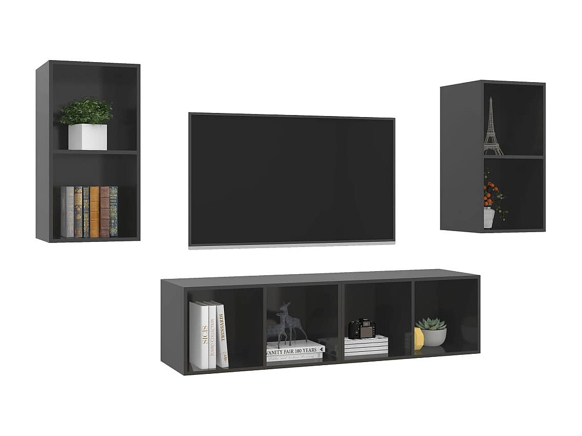 Kerlin Tv-wandmeubelen 4 st spaanplaat hoogglans grijs