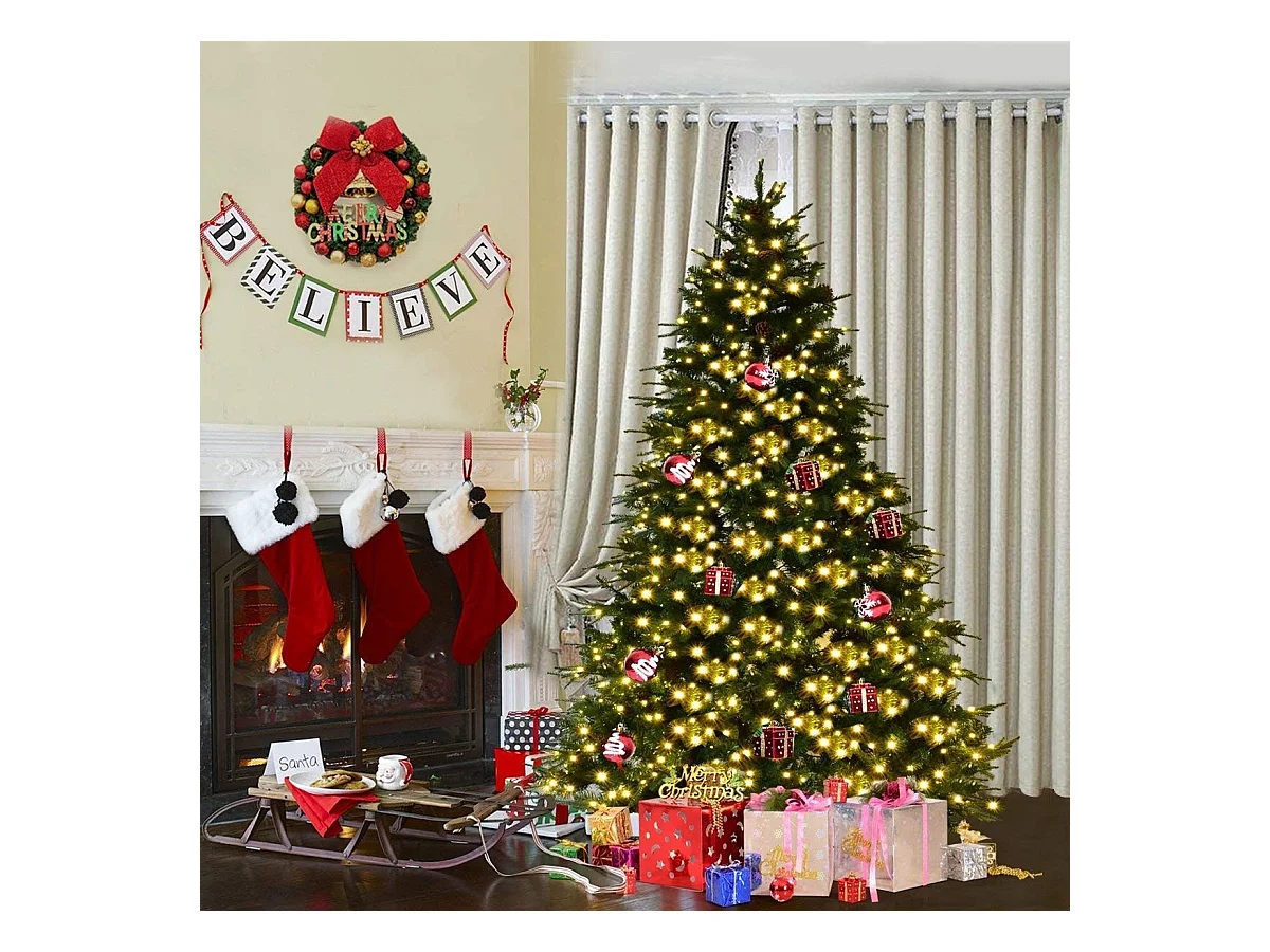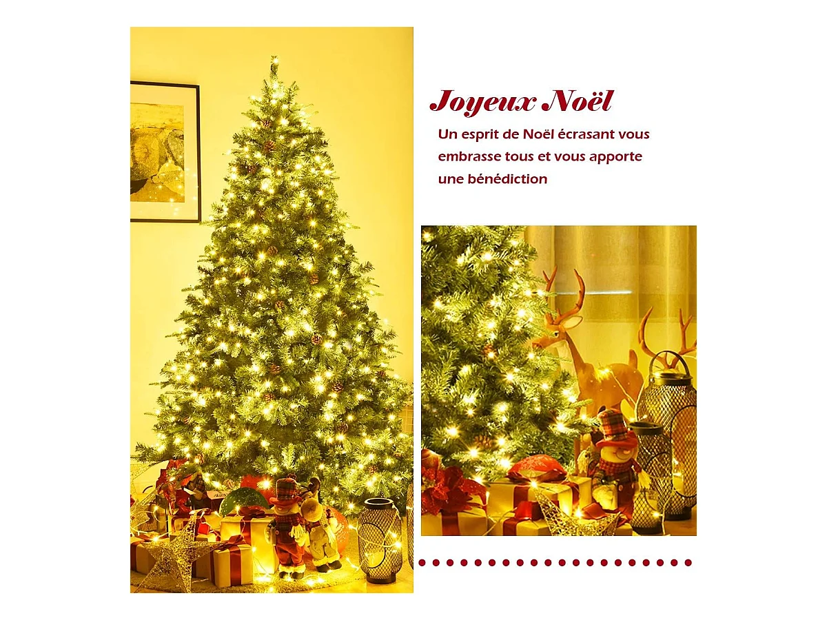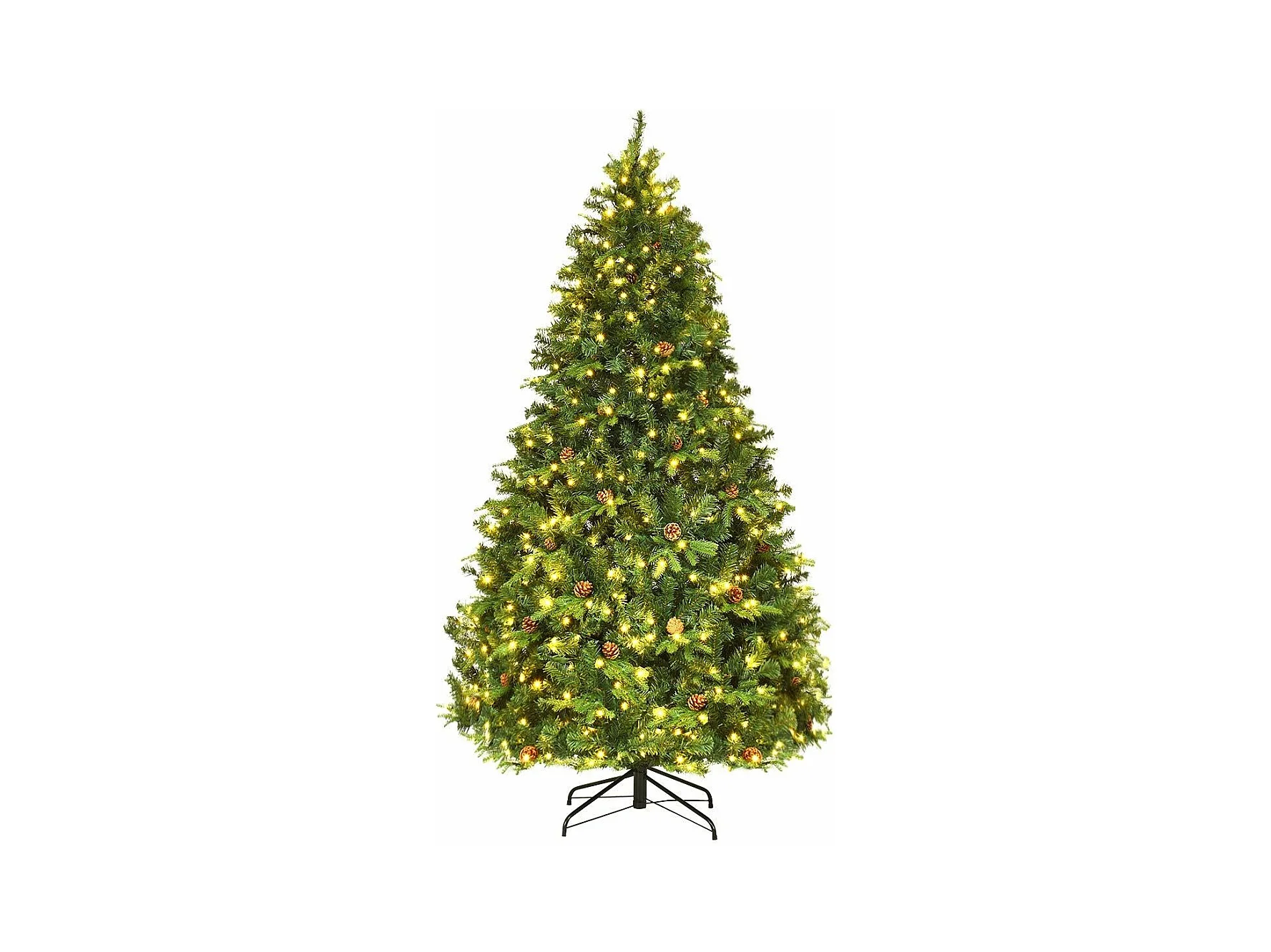 Kerstboom, kunstkerstboom met warmwitte LED-verlichting en dennenappels, PVC-materiaal kerstversiering voor thuis, winkel, groen (240CM)