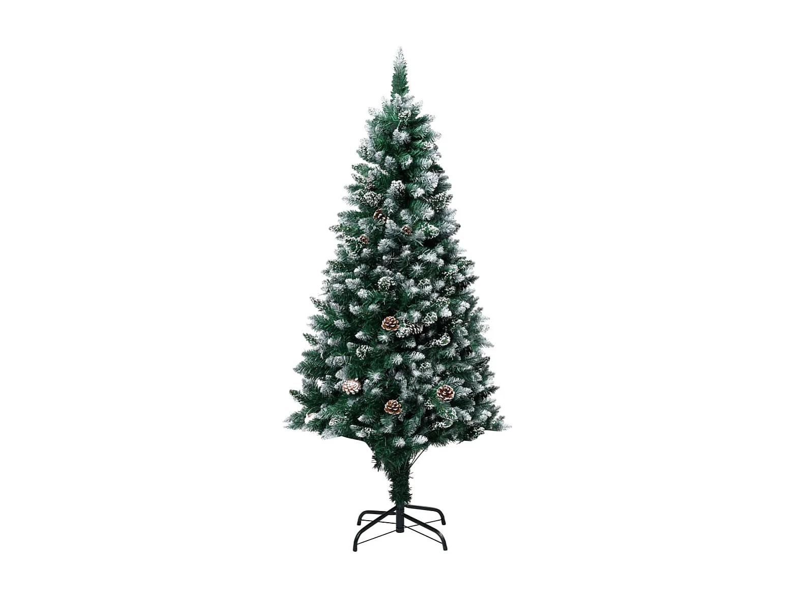 Kerstboom met dennenappels en witte sneeuw 150 cm