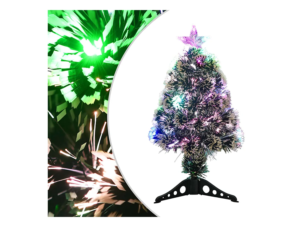 Kerstboom met LED 64 cm glasvezel groen en wit