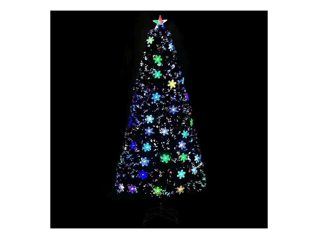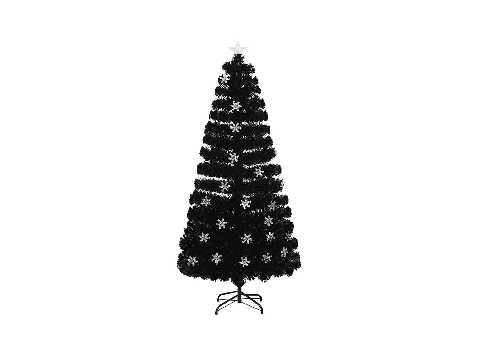 Kerstboom met LED-sneeuwvlokken 150 cm glasvezel zwart