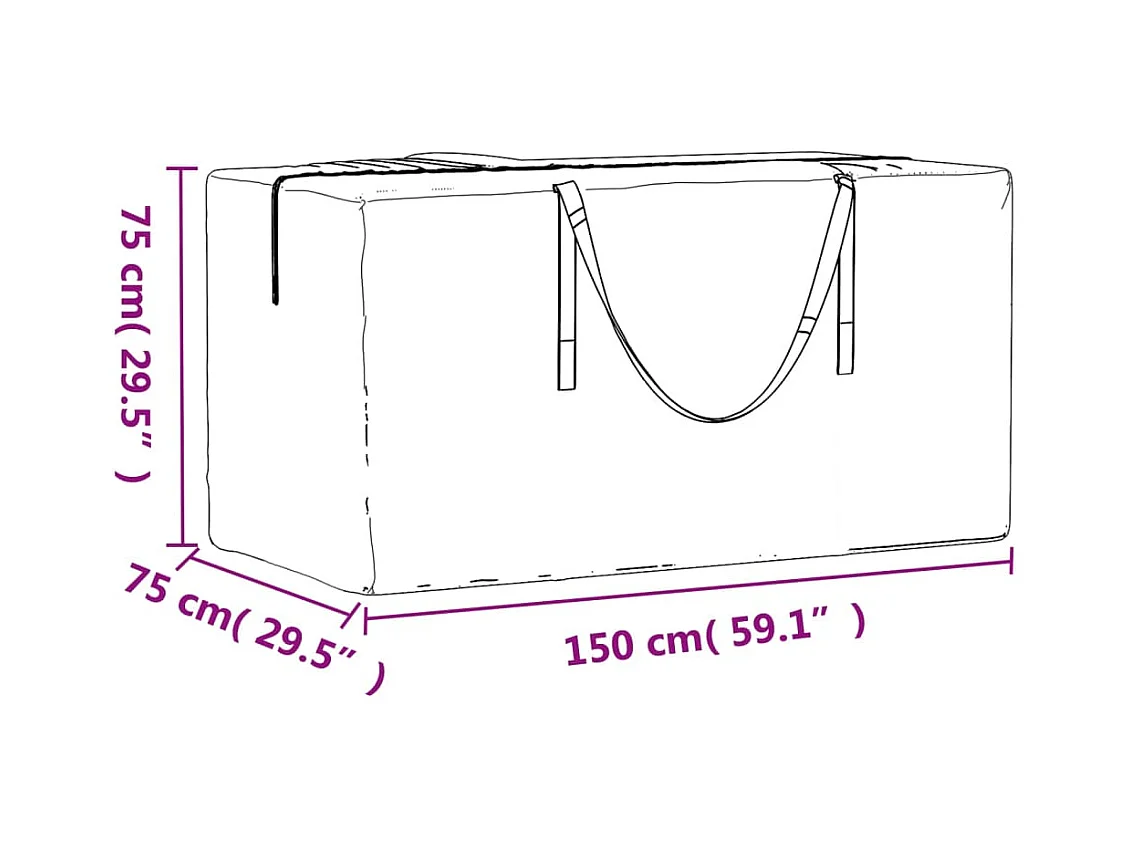 Opbergtas voor tuinkussens zwart 150x75x75 cm PE