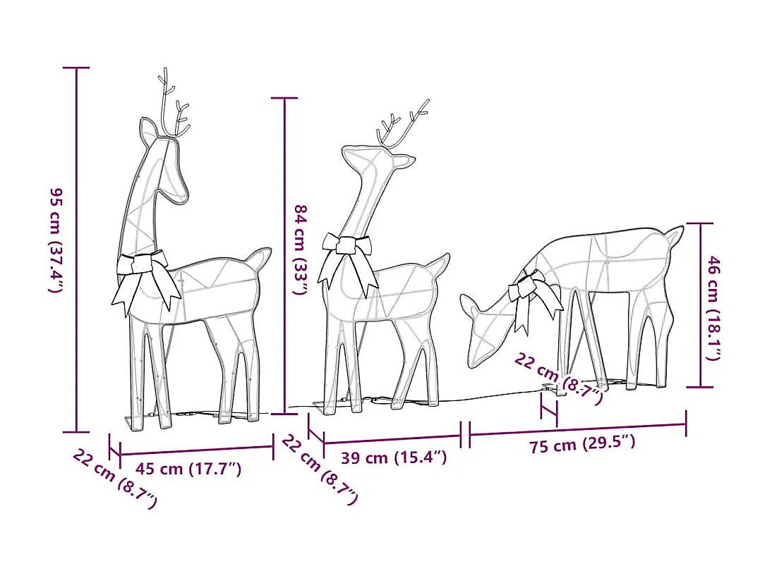 Kerstdecoratie rendier 3 stuks 90 LED warm wit