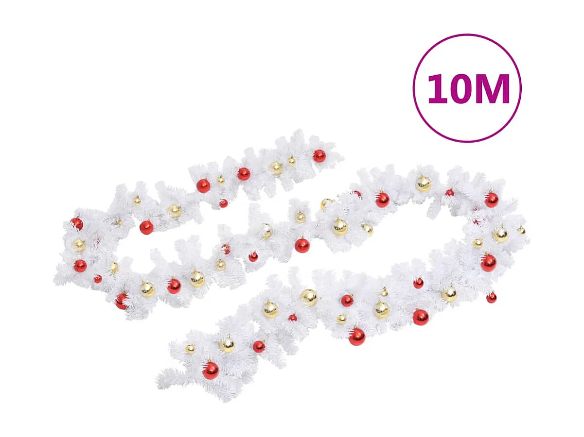 Kerstkrans versierd met ballen Wit 10 m