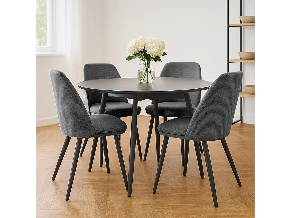 Kety eetkamerstoel in donkergrijze microvezel met zwarte metalen poten