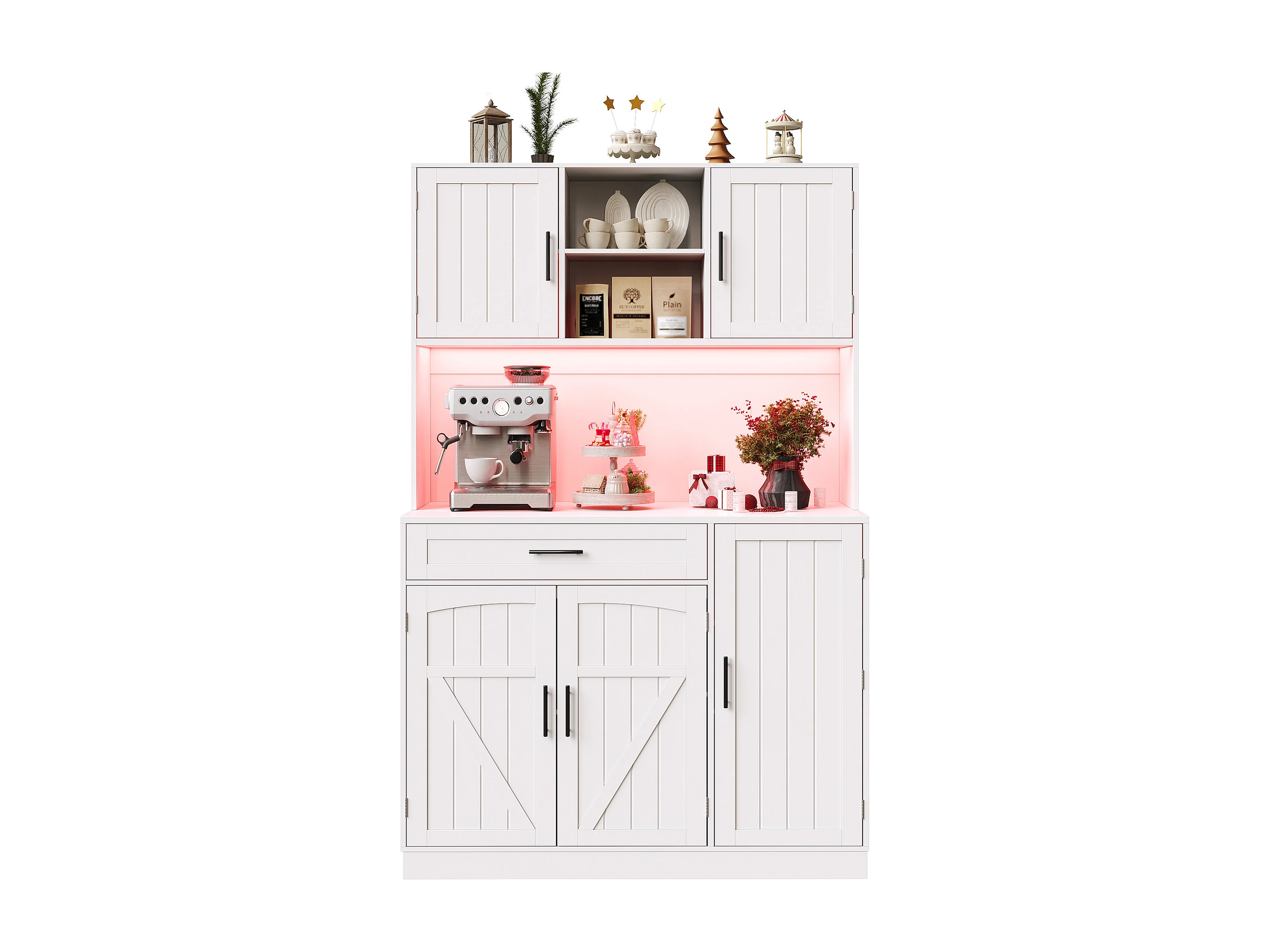 Keuken buffet 110x38x180 cm - 5 deuren en 1 lade - kruidenplank - met LED-verlichting en stopcontact - Wit
