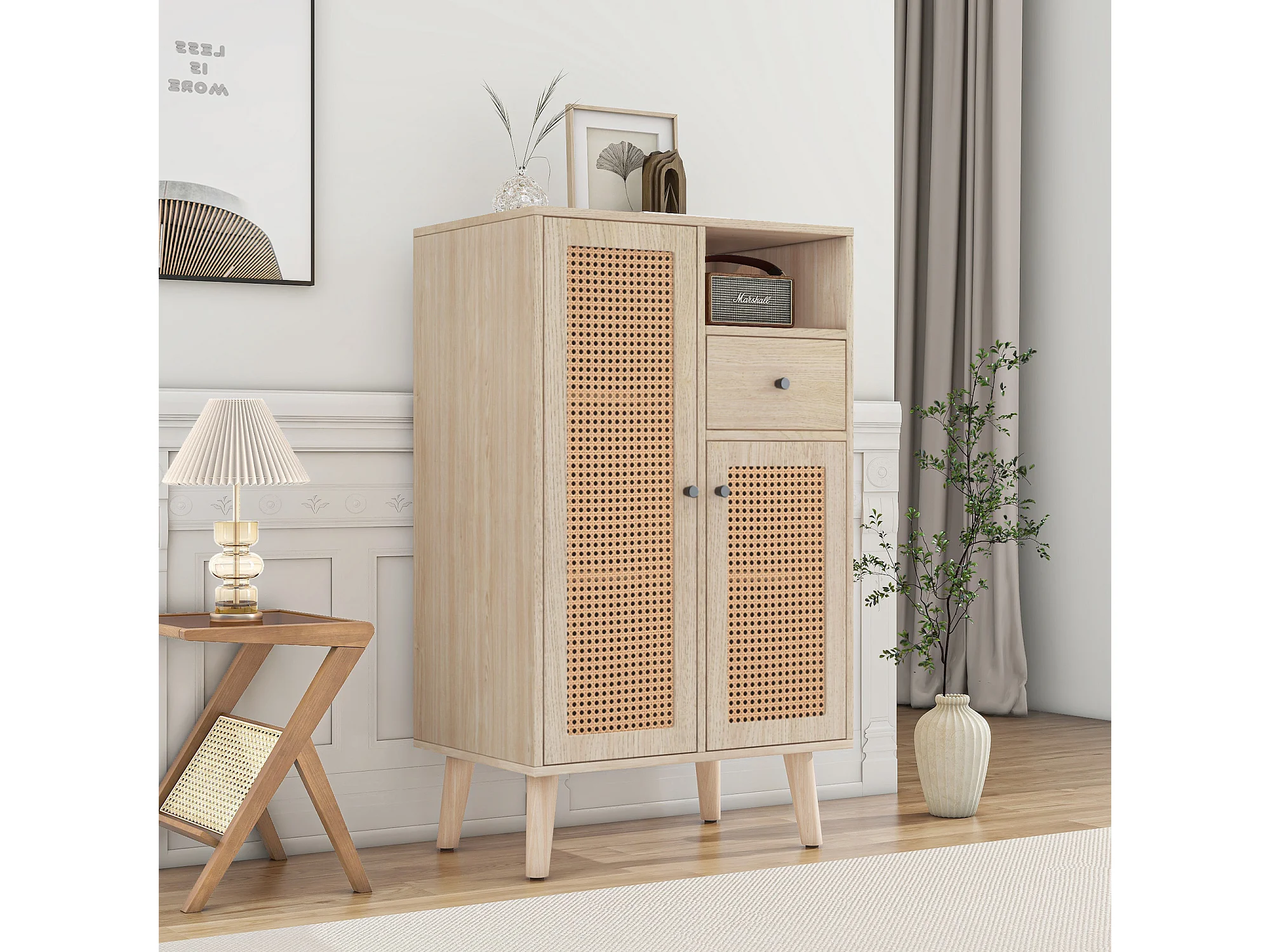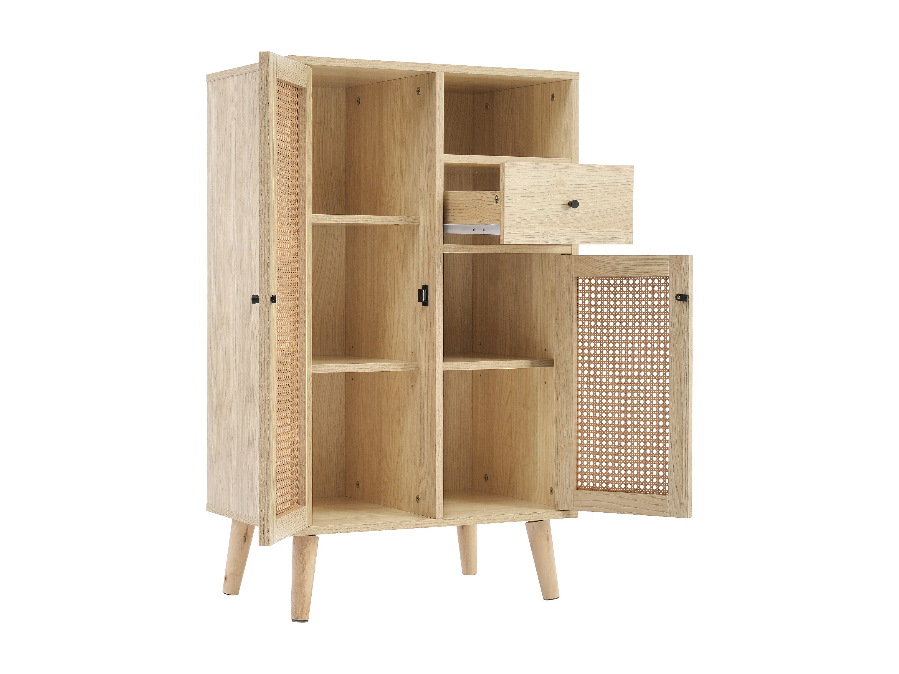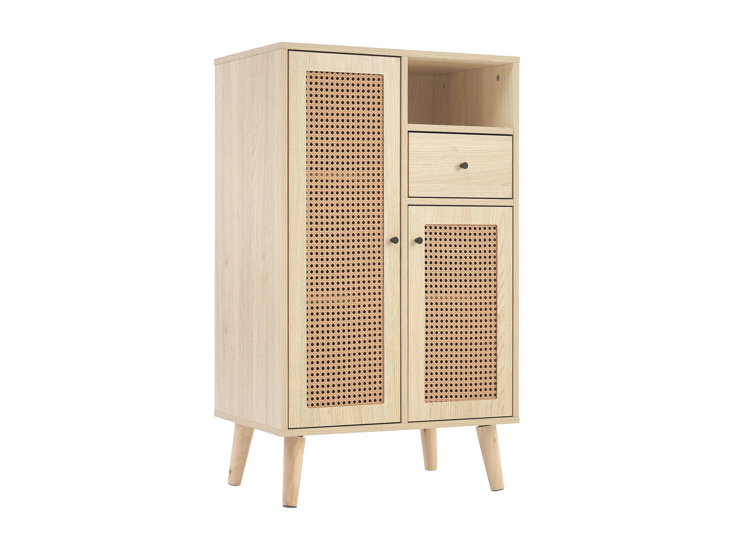 Keuken dressoir 60x40x110cm, 2 rotan deuren en 1 lade, hout, licht naturel