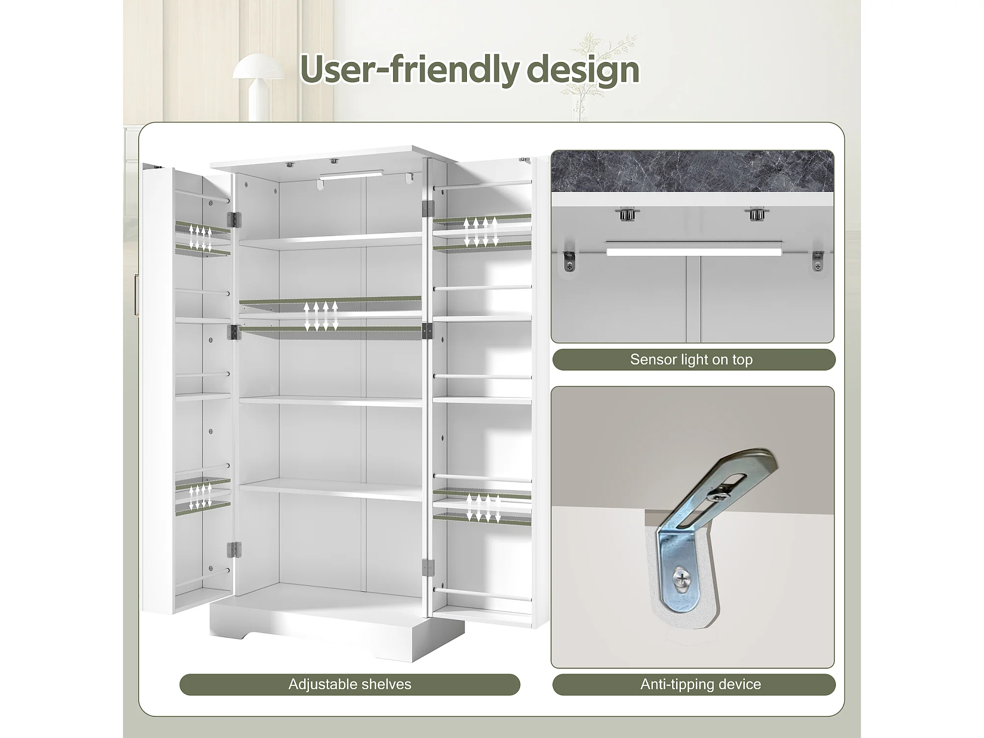 Keuken dressoir met 2 deuren en LED-detectie - Wit 60 x 40 x 120,5 cm
