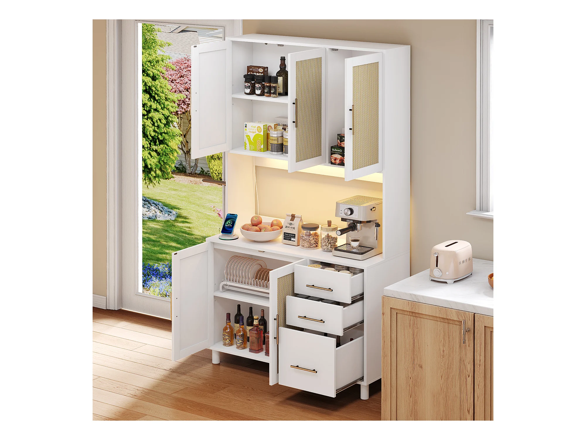 Keuken dressoir met LED's - 100 x 40 x 183 cm - met USB + stopcontacten + verstelbare planken + 3 lades - MDF - wit