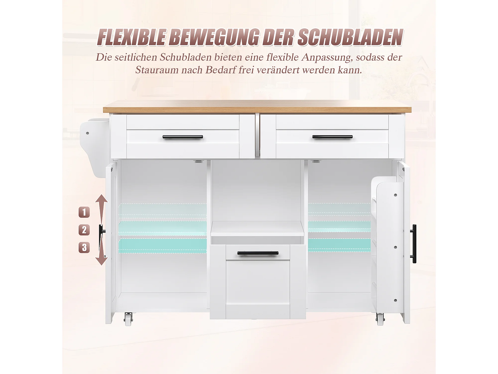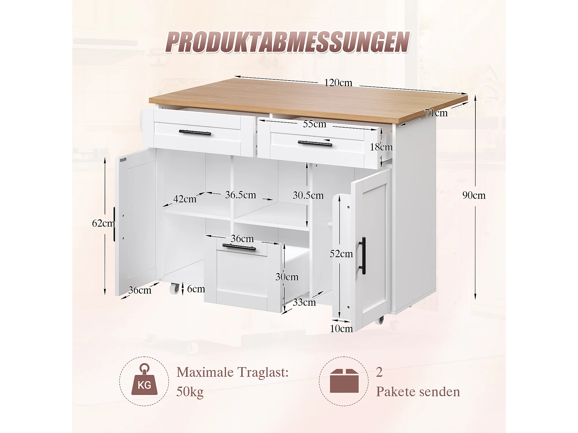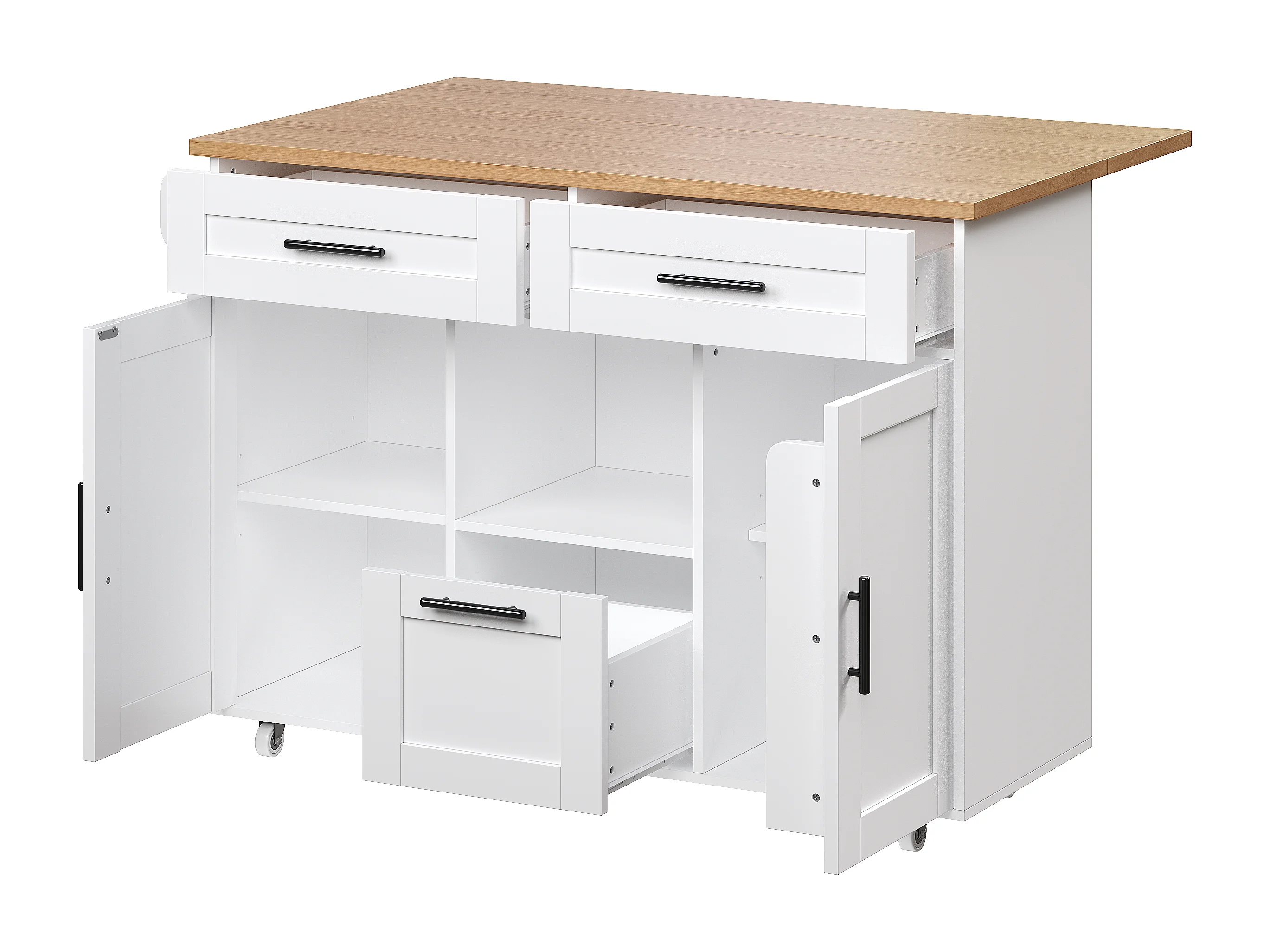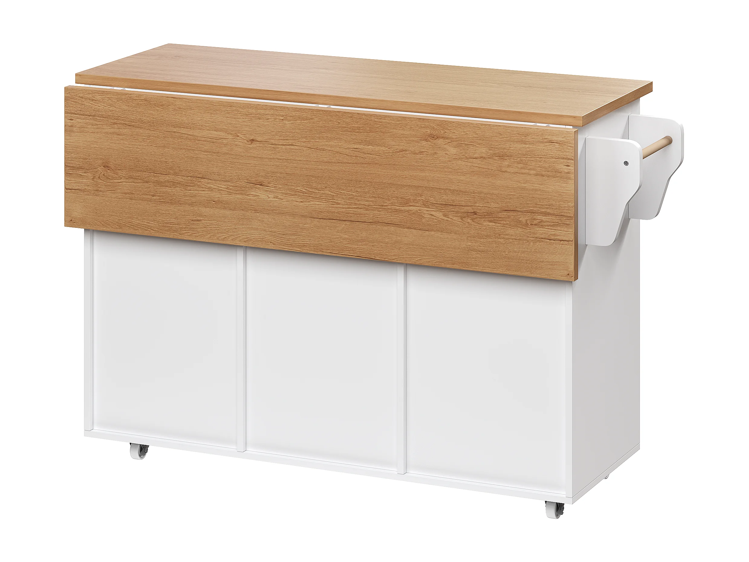 Keukeneiland op wielen met 3 lades en 2 deuren - Hout en witte kleur