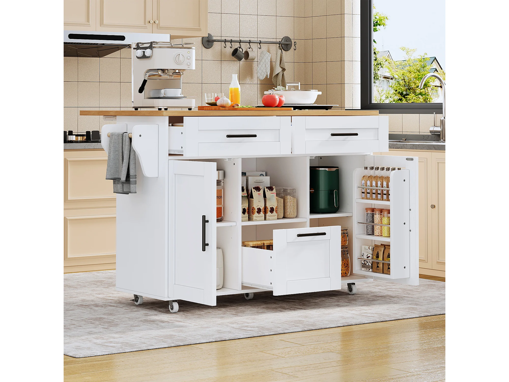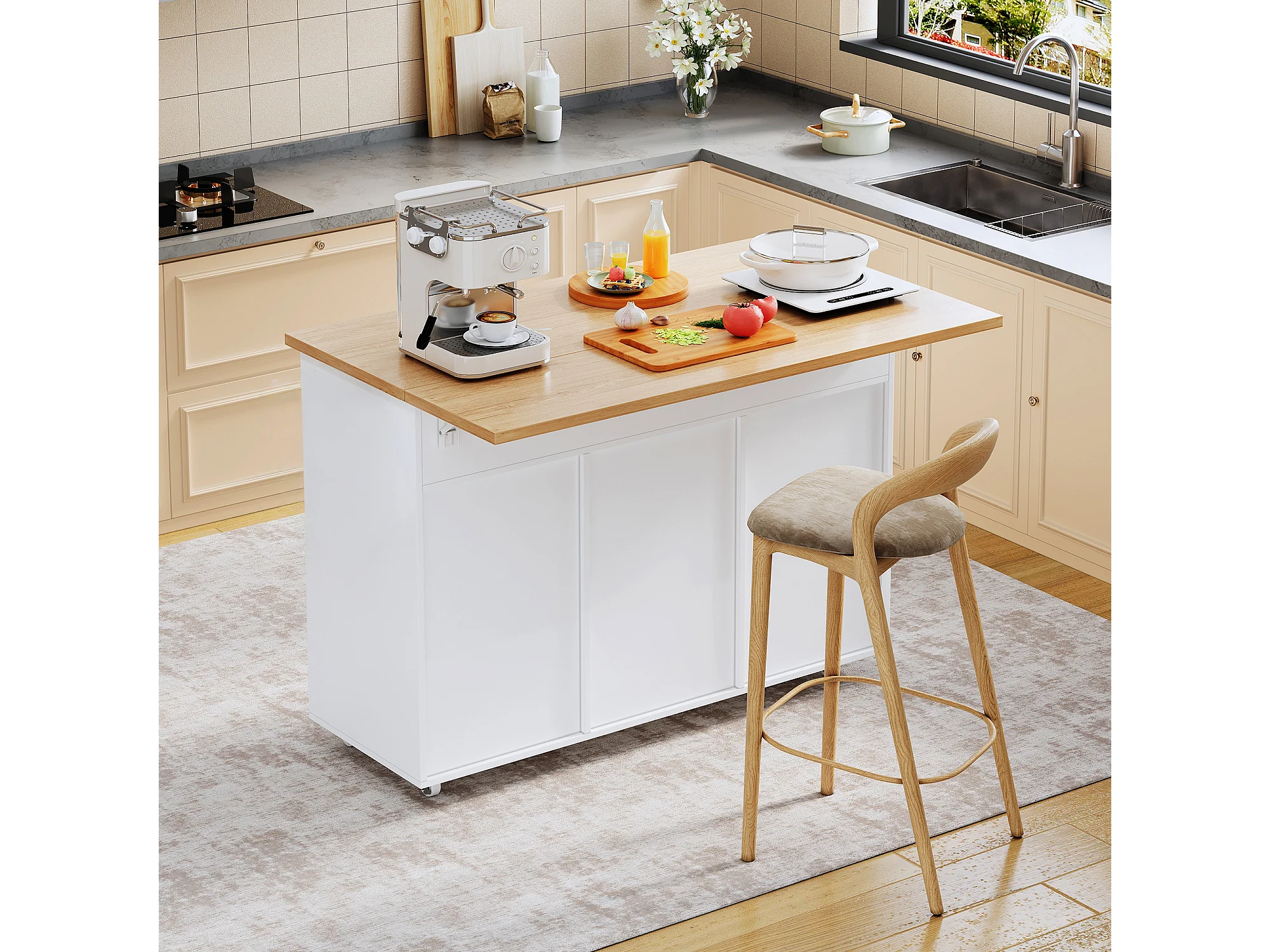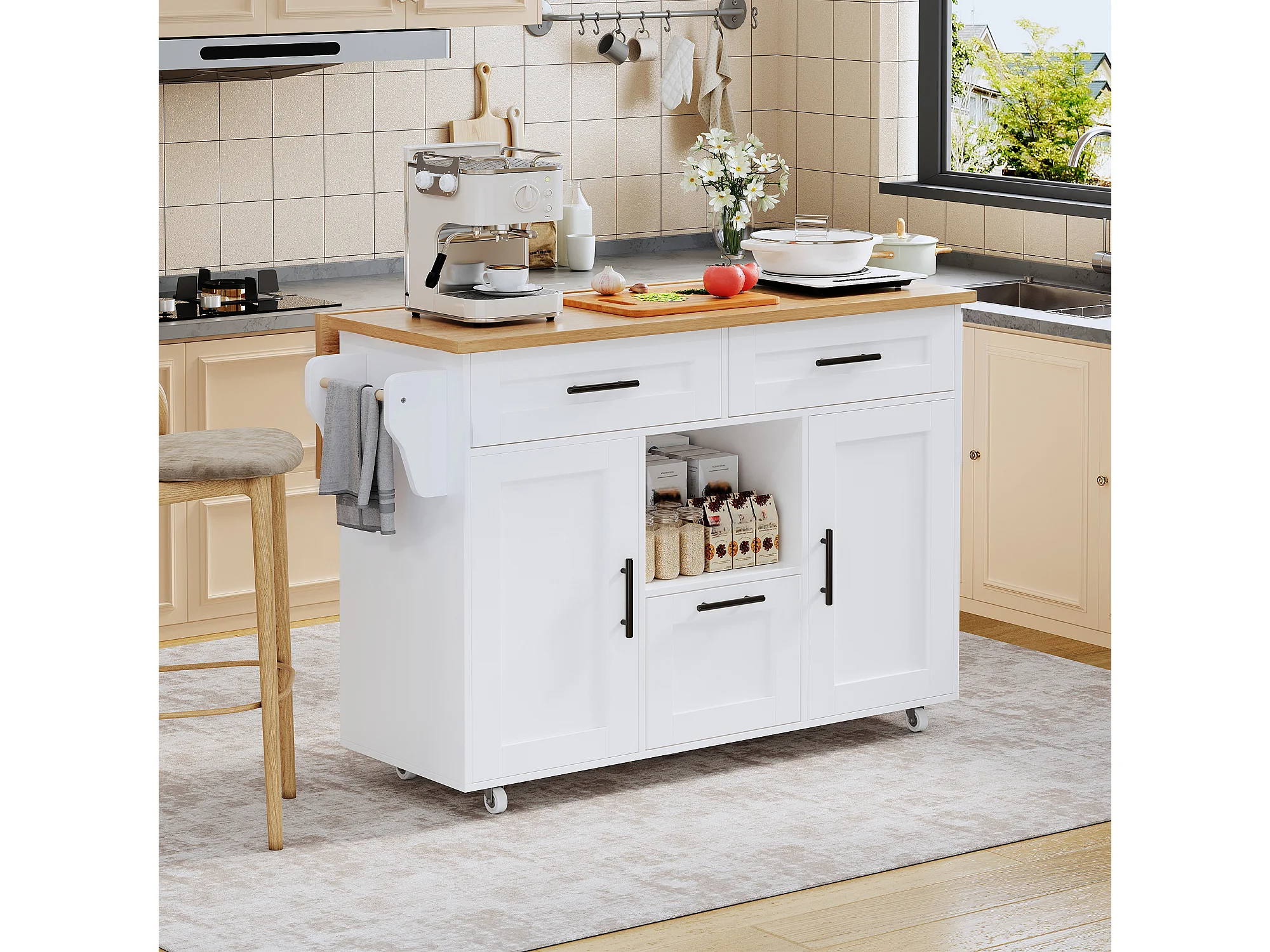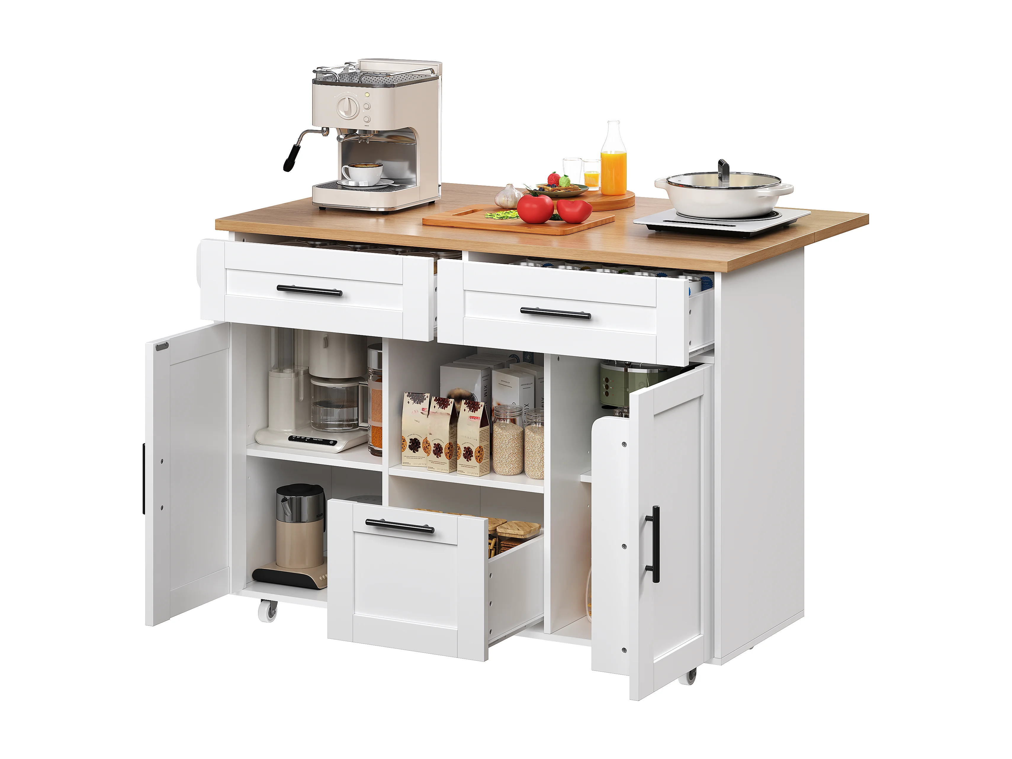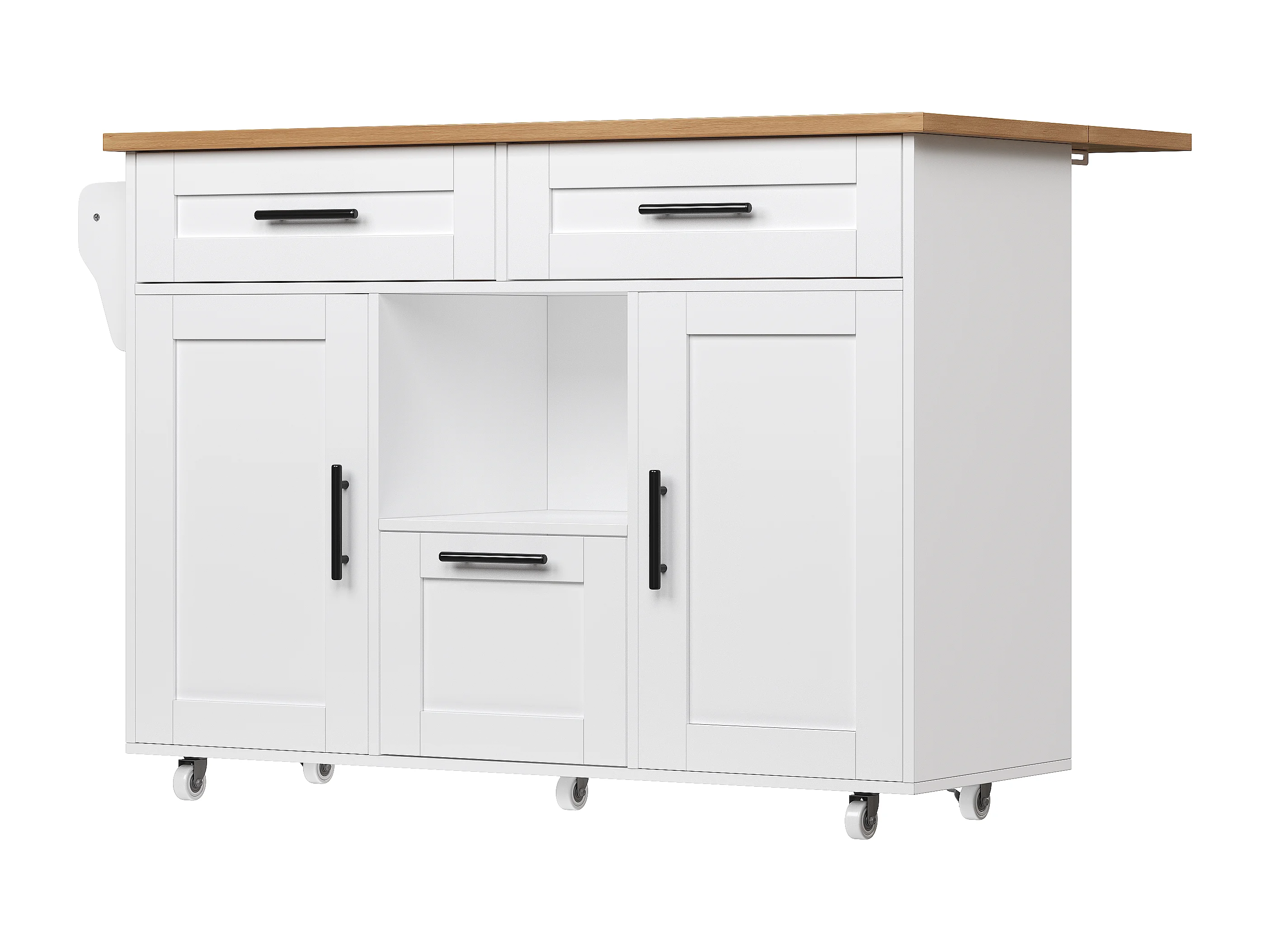 Keukeneiland op wielen met 3 lades en 2 deuren - Hout en witte kleur